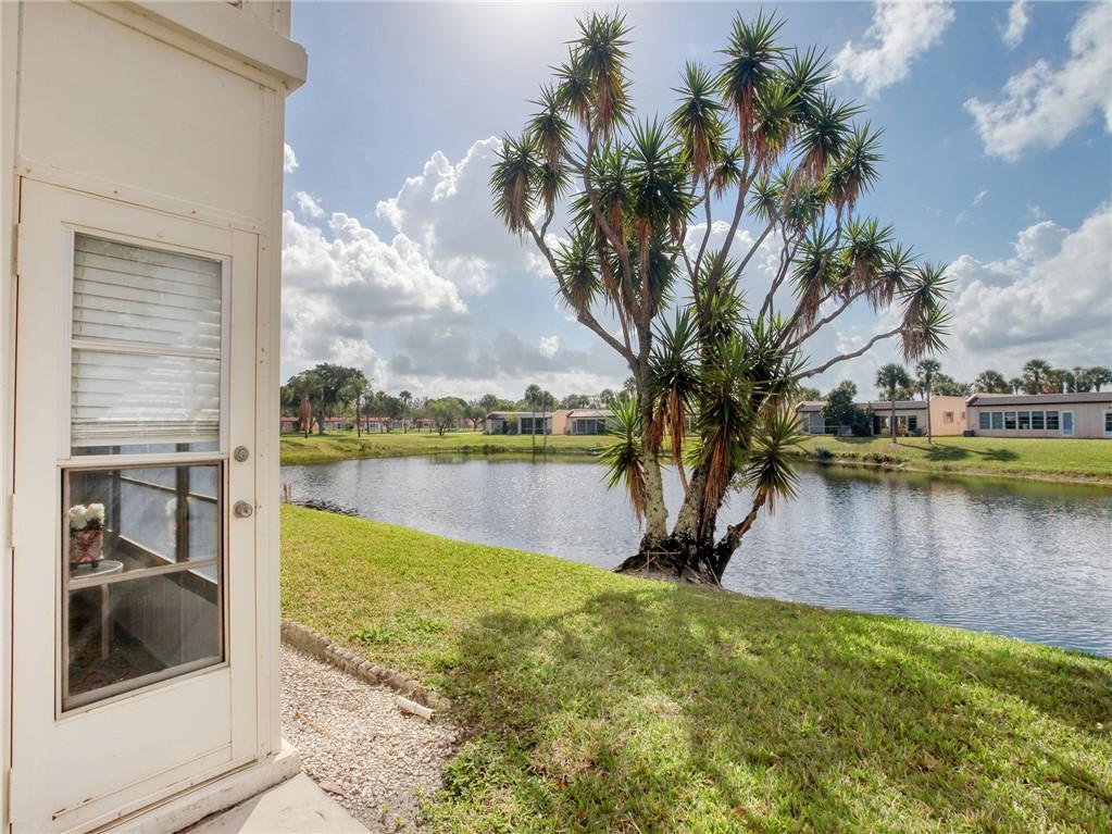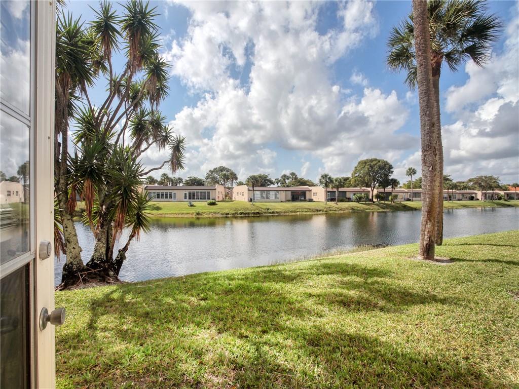 Opportunity is knocking for the lucky buyer of this beautiful waterfront condo in one of West Palm Beache' best kept secrets. Golden Lakes is ia quaint, gated, over 55 community with countless amenities & close to great shopping, dining, major highways, City Center & the scenic beaches of West Palm Beach. Bike & walking trails throughout. This condo has been substantially updated & freshly painted with tankless, instant hot water heater. Steps from mailbox, community pool. Washer/Dryer inside unit, accordion hurricane shutters, eat in kitchen with wood cabinets, natural stone counter tops, laminate floors throughout (except bedroom). Back door off of large family room opens to back yard & beautiful lake vistas. Do I hear someone knocking???