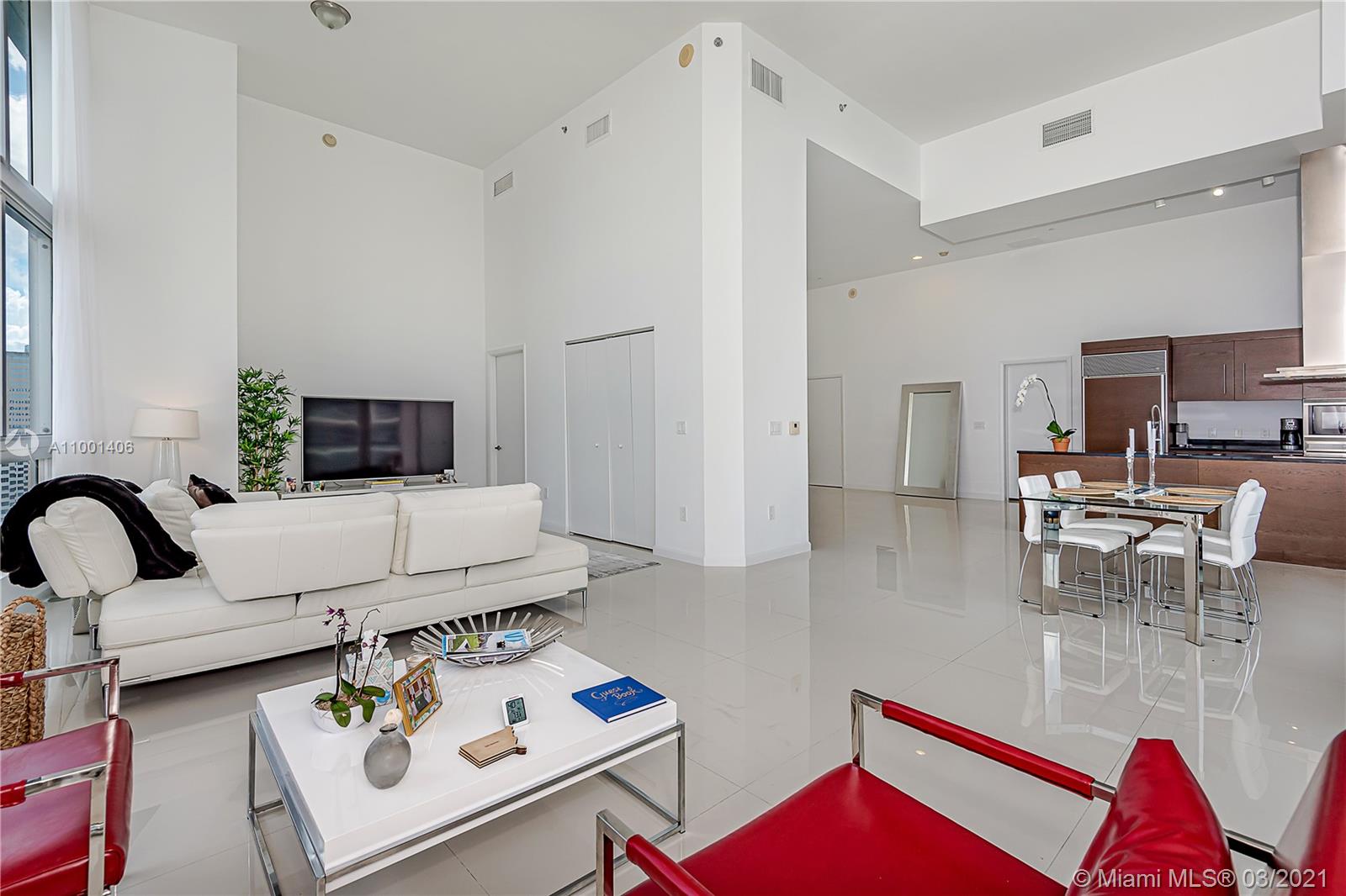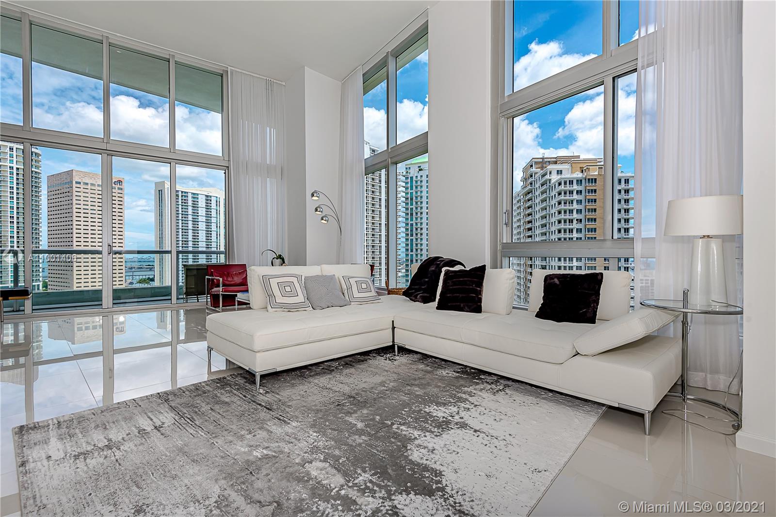 FURNISHED LOFT UNIT 22 FT CEILINGS/2ND BEDROOM REMOVED TO CREATE TRUE NY LOFT FEEL , CORNER WITH WRAPAROUND GLASS BALCONY & SWEEPING VIEWS OF SPARKLING BISCAYNE BAY FROM ALL ROOMS. A FOYER ENTRY WELCOMES YOU TO A SPACIOUS OPEN FLOOR PLAN FLOODED WITH NATURAL LIGHT & GLEAMING FLOORS THROUGHOUT. KITCHEN APPLIANCES ARE TOP OF THE LINE (SUB-ZERO, WOLF, BOSH). THE MASTER SUITE WILL TAKE YOUR BREATH AWAY SEPARATE WALK-IN CLOSET, SPACIOUS BATHROOM FEATURES JACUZZI TUB, LARGE SHOWER ENCLOSURE & DUAL SINKS. THE COMPLEX AMENITIES INCLUDE ONSITE STATE-OF-THE-ART SPA, AEROBIC STUDIO, WEIGHT & SPINNING ROOMS, CLUB-ROOM, SCREENING ROOM. EASY ACCESS TO BRICKELL CITY CENTER, AREA RESTAURANTS & TROLLEY. THIS IS A HOME IN THE SKY WAITING TO WELCOME ITS NEW OWNER!"