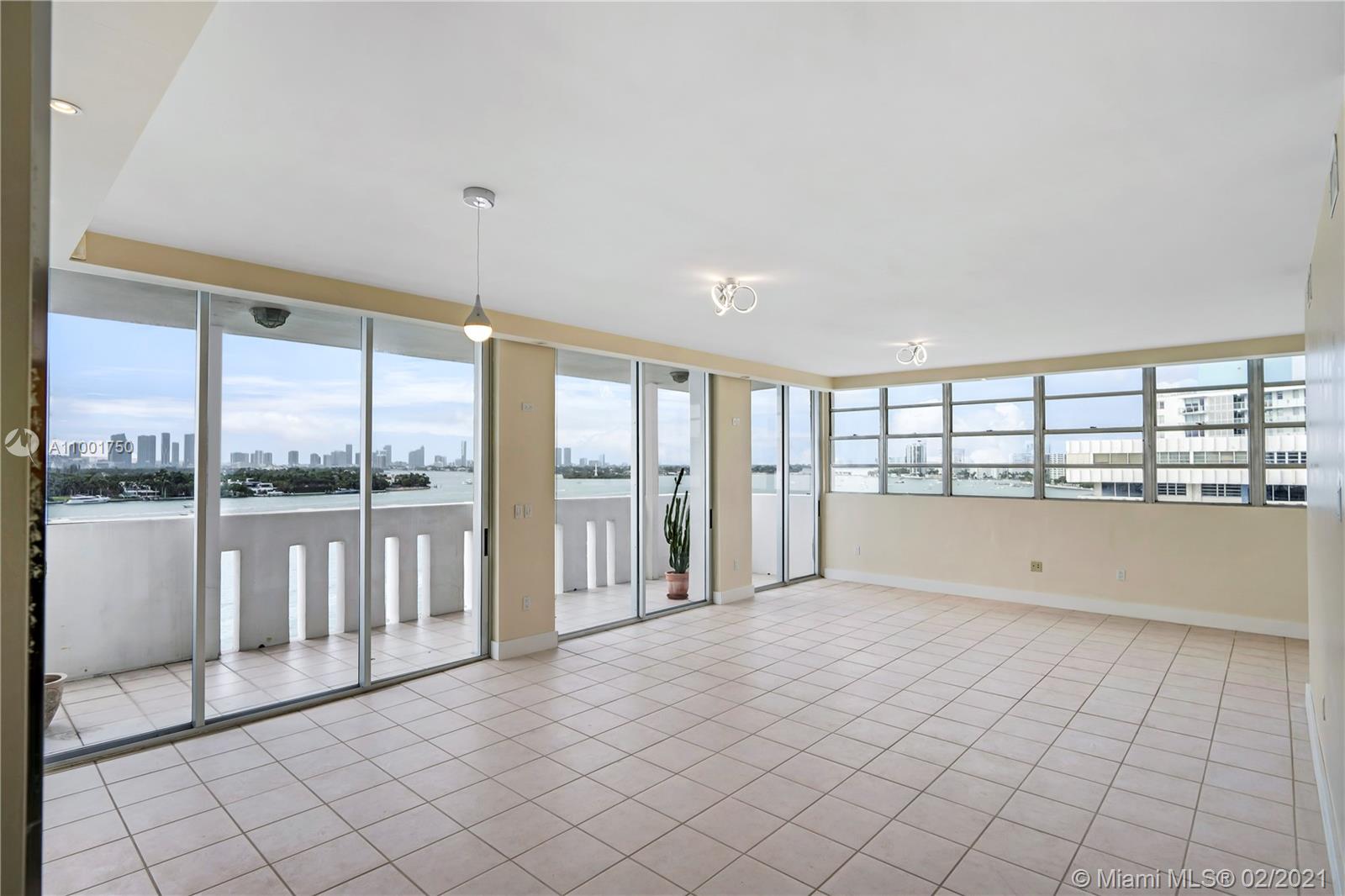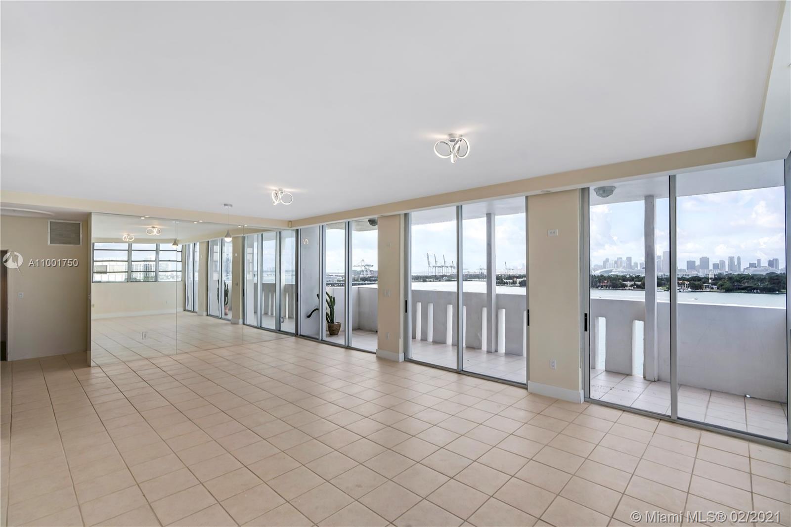 Perched on the top floor with sweeping wide open water views of Biscayne Bay, Star Island and Downtown Miami from every room in this apartment! This extremely rare combination of square feet, water views, and lofty appeal, make this PH unit unlike anything available in Miami Beach. The combination of a large 2 BDRM, 2 Bath and an oversized studio, make for a 3 BDRM, 3 Bath apartment measuring 1850sf. Can be used as a separate rental/guest suite or the entire space can be reimagined to become one of the most special waterfront apartments in Miami Beach. All packaged in an incredibly charming, Art Deco building with resort like amenities. Comes with 3 parking spots! Pet friendly. Located on West Ave and steps to Whole Foods. Coming soon is a 3 acre public park directly across the street!