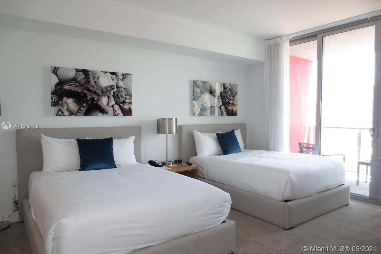 Beautiful Intra coastal Direct views from all rooms of this 2 bed room and 2 full bathrooms apartment at Beachwalk Resort. 2 Separate balconies. Apartment has 2 entrance doors from hall and can be rented as a 2 bed room or separately as: 1 bed room and living room with fully equipped kitchen, full bathroom and 2 balconies or separately with other entrance door Studio with 2 beds, full bathroom, TV, mini refrigerator and 1 balcony. In-unit washer and dryer. Monthly HOA include Internet + Cable TV + Electricity and Resort Amenities. Owners have access to Large heated Pool on the Roof. Restaurant + Pool +Gym+beach shuttle + Beach Service and Sauna. Owner obligated not to live in apartment for more than 6 months during year period and rent or keep apartment vacant for the rest of the time.