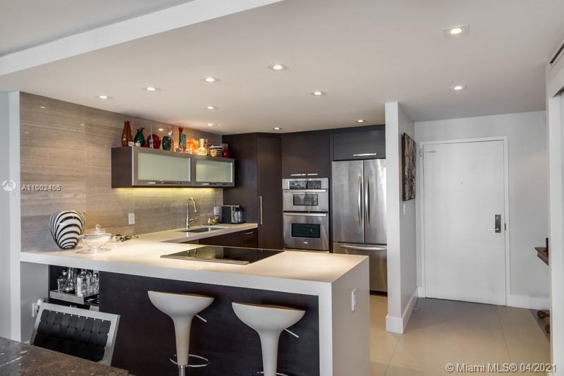 Rarely available "03" 1BR/1BA unit in Costa Brava on Belle Isle. Renovated with high-end finishes, open floor plan, newer HVAC, Lappato finish porcelain floors, marble shower, Caesar stone quartz counters, hurricane impact windows and doors facing southeast with sweeping views of Biscayne Bay and Miami skyline. The half bath can be converted to laundry room. Building has 24-hour doorman and valet, gym and rooftop solarium with stunning views. Pet friendly building with beautiful park and dog park across from building. Walk to The Standard, Sunset Harbour shops and restaurants, or Lincoln Road. Centrally located to South Beach and Edgewater, Midtown, and Design District. Private marina with floating dock great for paddle-boarding, and bay-side heated pool. Furniture is negotiable.