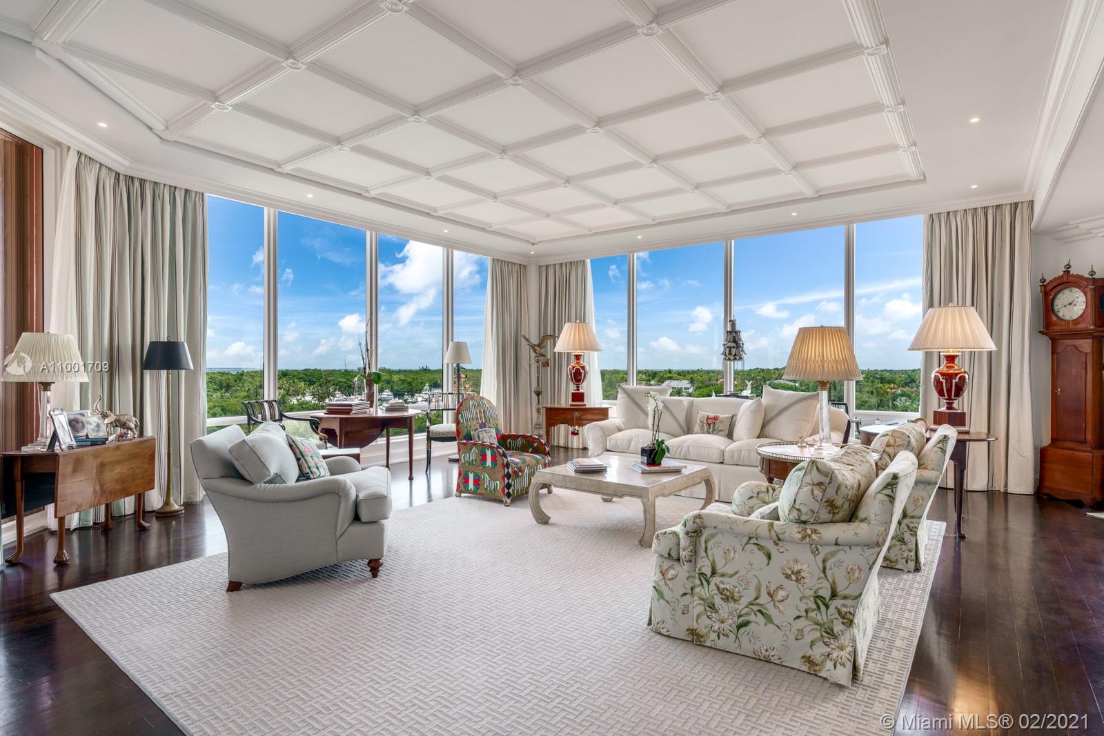 Beautiful and sophisticated Gables Club residence with breath taking views. Elevator opens into an elegant private foyer which guides you into spacious living areas with natural light and custom mill-work and coffered ceilings. An over-sized balcony offering waterway views is perfect for entertaining. The chefs eat-in kitchen has 2 Viking electric ovens, a Viking electric cooktop and a Sub-Zero refrigerator/freezer. A grand primary bedroom suite has a sitting area with custom built-ins, a fireplace, and 2 walk-in closets. Also available, guest suite #103 complete with kitchen, dining and sitting area. Resort-style amenities include 24-hour concierge, valet, clubhouse, swimming pool and a tennis court.