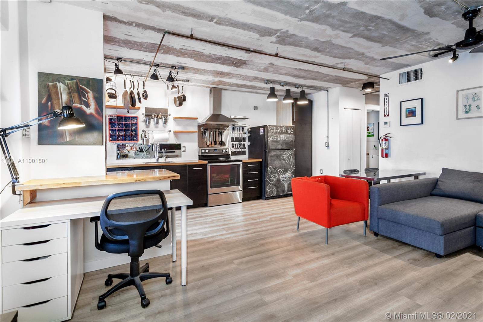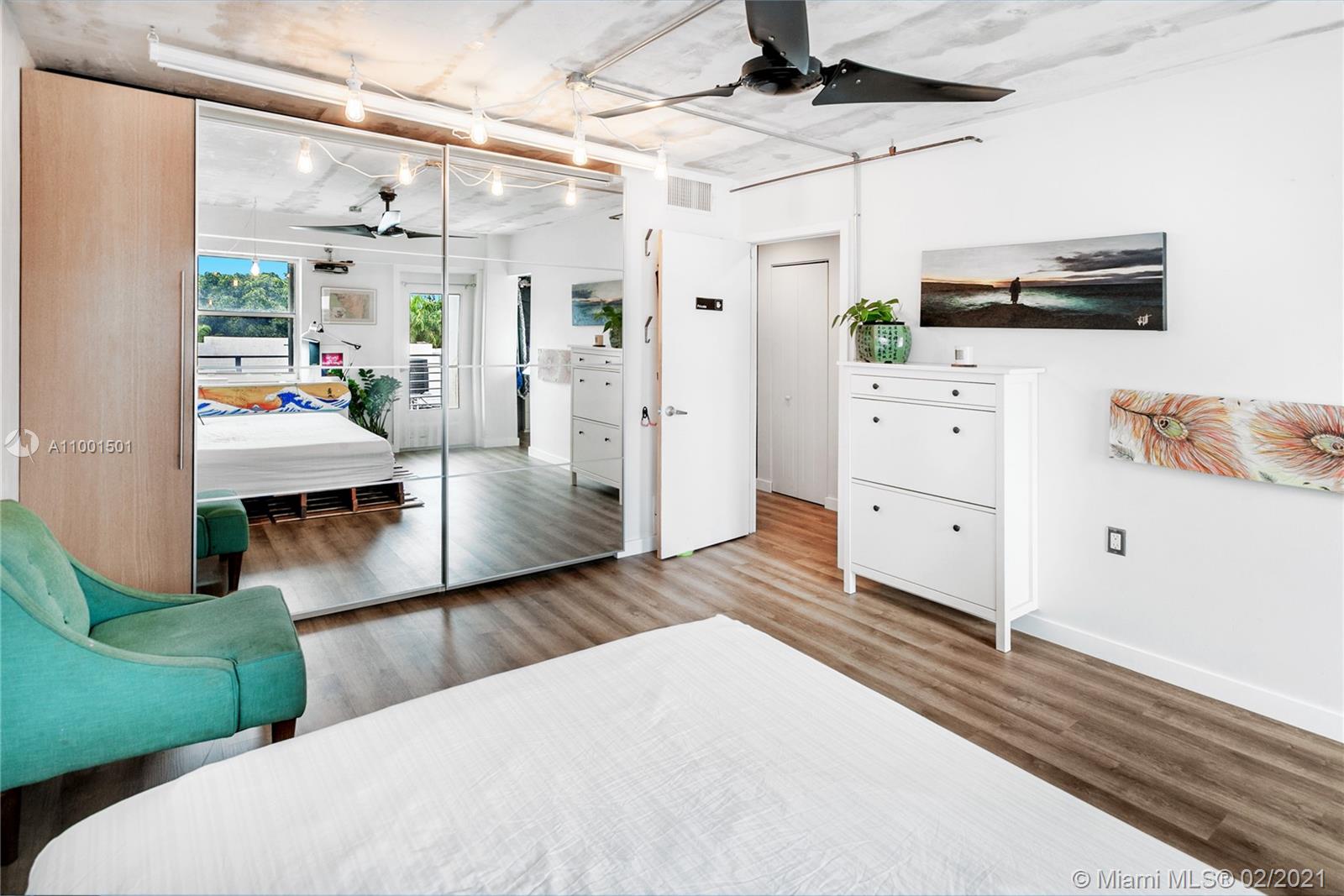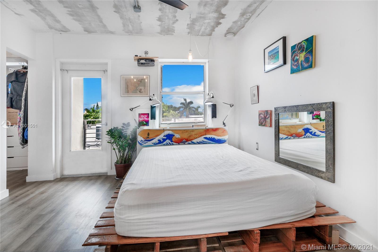 TURNKEY & FURNISHED industrial modern 1 bedroom 1.5 bath w/ balcony. NEW kitchen, floors, moulding, bathroom, closets, central AC, water heater & exposed copper plumbing throughout unit. Floating shelves, tons of built-ins, LED lighting w/dimmers, clean and lots of attention to detail. COVERED & SECURED PARKING w/ guest spots. Amenities include Pool, elevator, community BBQ and laundry on floor. Hurricane shutters, Key FOB and CCTV security. Pets OK. Tenant occupied month-to-month at BELOW market rate. Do not disturb. 50 year certification completed. On-site management. Strong financials. No assessments. Video available. TEXT Agent for more information.