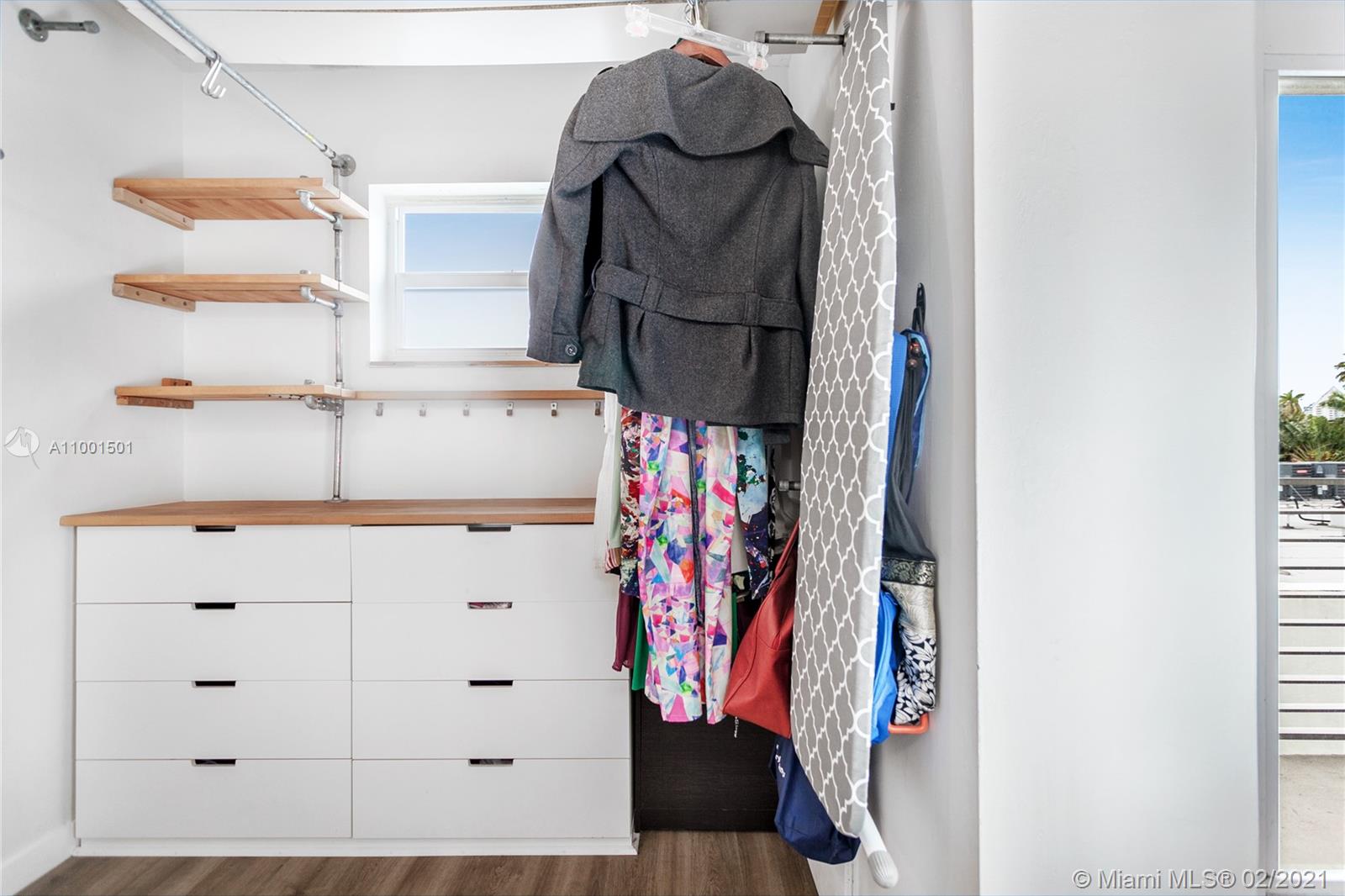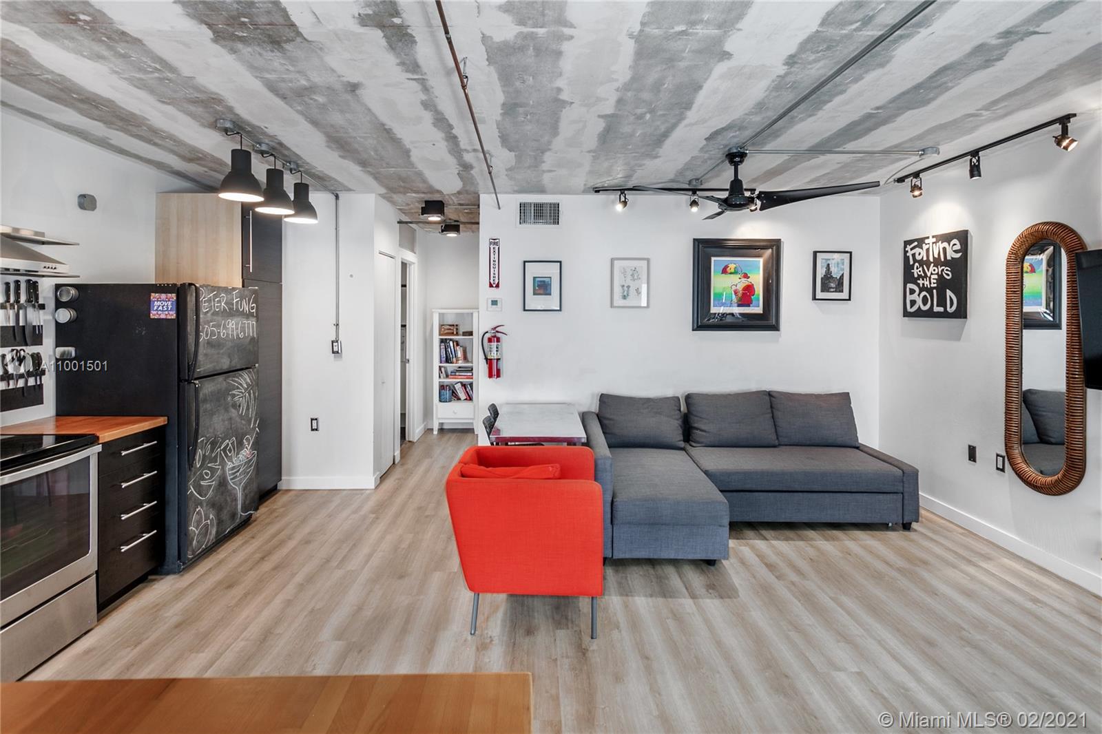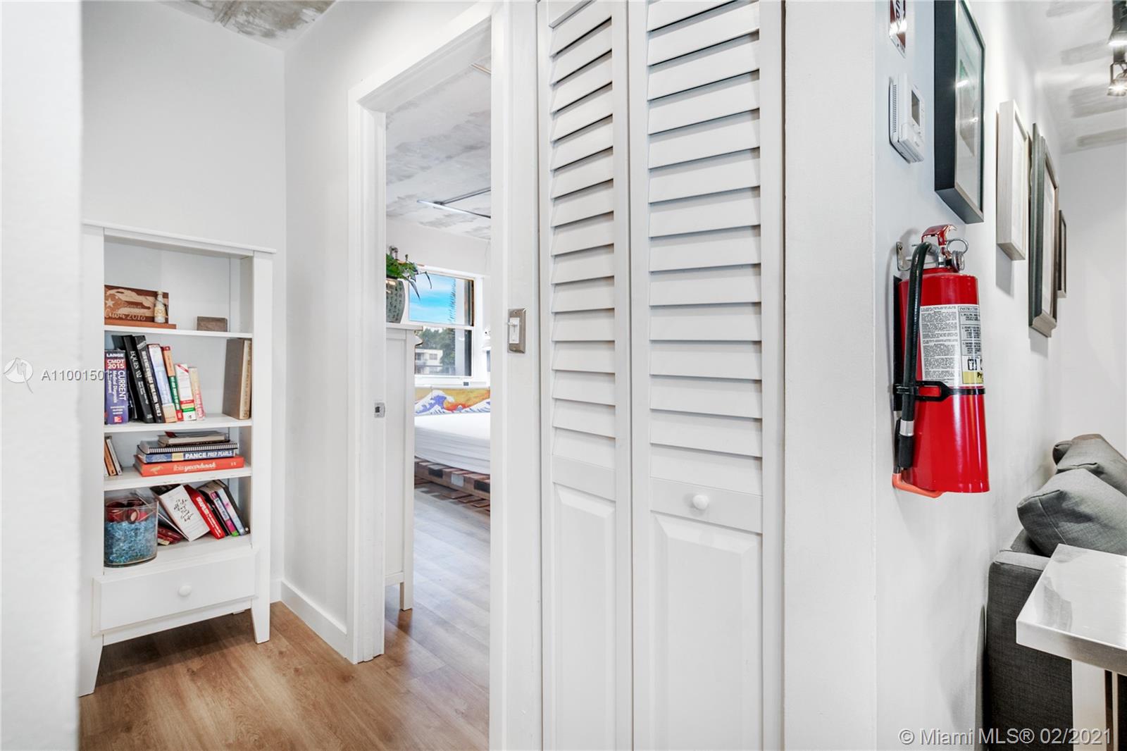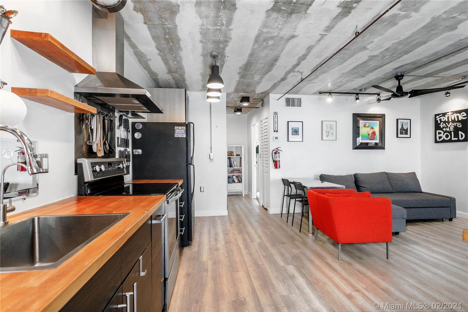 TURNKEY & FURNISHED industrial modern 1 bedroom 1.5 bath w/ balcony. NEW kitchen, floors, moulding, bathroom, closets, central AC, water heater & exposed copper plumbing throughout unit. Floating shelves, tons of built-ins, LED lighting w/dimmers, clean and lots of attention to detail. COVERED & SECURED PARKING w/ guest spots. Amenities include Pool, elevator, community BBQ and laundry on floor. Hurricane shutters, Key FOB and CCTV security. Pets OK. Tenant occupied month-to-month at BELOW market rate. Do not disturb. 50 year certification completed. On-site management. Strong financials. No assessments. Video available. TEXT Agent for more information.