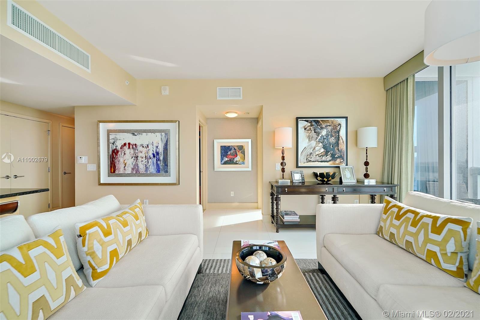 BEAUTIFUL INTRACOASTAL, SUNSET, CITY and PARTIAL OCEAN views from 14th floor in prestigious North Tower, Carillon Miami Wellness Resort, a premier oceanfront luxury property. Highly desired “04” corner line unit with much light. Unit in pristine condition, never rented, and owner using only periodically. High quality furnishings included (with few exceptions). Classes and full use of 70,000 sqft fitness/spa center and amenities included in condo fees. Salon; 4 pools; concierge; restaurant; pool and beach service, bar, 24-hour sec, valet, wellness staff, boardwalk & beach steps from your unit. Walking neighborhood with all conveniences, including Publix across the street. Especially now, you deserve a sanctuary with a lifestyle of luxury in a community that values wellness and safety.