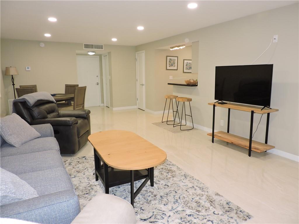 BEAUTIFUL, BRIGHT, SPACIOUS CORNER UNIT TURNKEY FURNISHED, REMODELED WITH MODERN UPGRADES & A CLEAN CONTEMPORARY LOOK, NO AGE RESTRICTIONS, RENT AFTER 1 YEAR, THIS CONDO IS TOTALLY RENOVATED. 24"X48" CUSTOM IVORY PORCELAIN TILE IN MAIN LIVING AREAS. LARGE EAT-IN KITCHEN W/ STAINLESS STEEL APPLIANCES, GRANITE COUNTER TOPS W/ CUSTOM TILE BACKSPLASH & SMOOTH CLOSE CABINETRY. NEW LED LIGHTING W/ PROGRAMMABLE DIMMER SWITCHES. MASTER BATHROOM HAS OVERSIZED SHOWER W/ PEBBLE STONE FLOORING, UPGRADED PLUMBING INCLUDING RAIN SHOWER, DUAL SINKS. NEW WATER HEATER & A/C. LOTS OF CLOSET SPACE, NEW INTERIOR DOORS & HARDWARE, PLUS MUCH MORE. THIS IS A RARE GEM. COME & SEE THIS BEAUTY! CLOSE TO BEACHES & SHOPPING, CLOSE TO CASINO AT DANIA BEACH, MINUTES TO AIRPORT & SEAPORT, COMMUNITY CLUBHOUSE & POOL