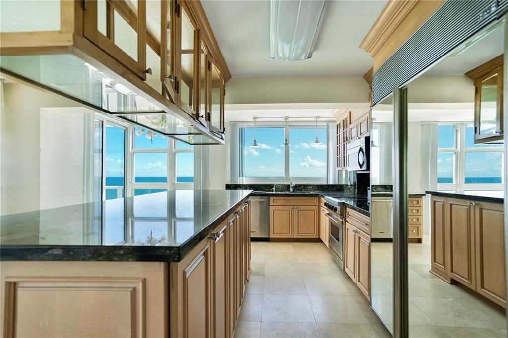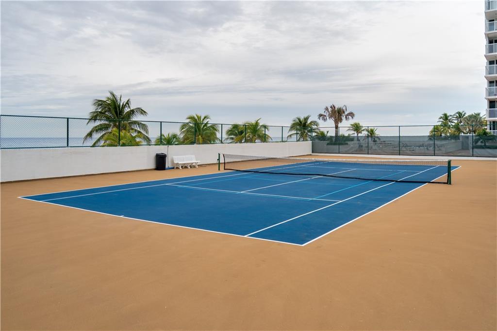 Direct Ocean Views from this NE corner unit. Foyer entry, 2 split master bedrooms and 2.5 baths. Incredible Views of Ocean in all directions. Open floor plan with huge kitchen plus center island, granite countertops and stainless appliances. Eat-in kitchen area and formal dining area. Oversized living room with floor-to-ceiling impact windows and wrap around terrace. Walk-in closet and inside laundry. Building located directly on the sand with private beach access, tennis court, pool and spa, garage parking, security building 24/7, gym and roof top Sky lounge.