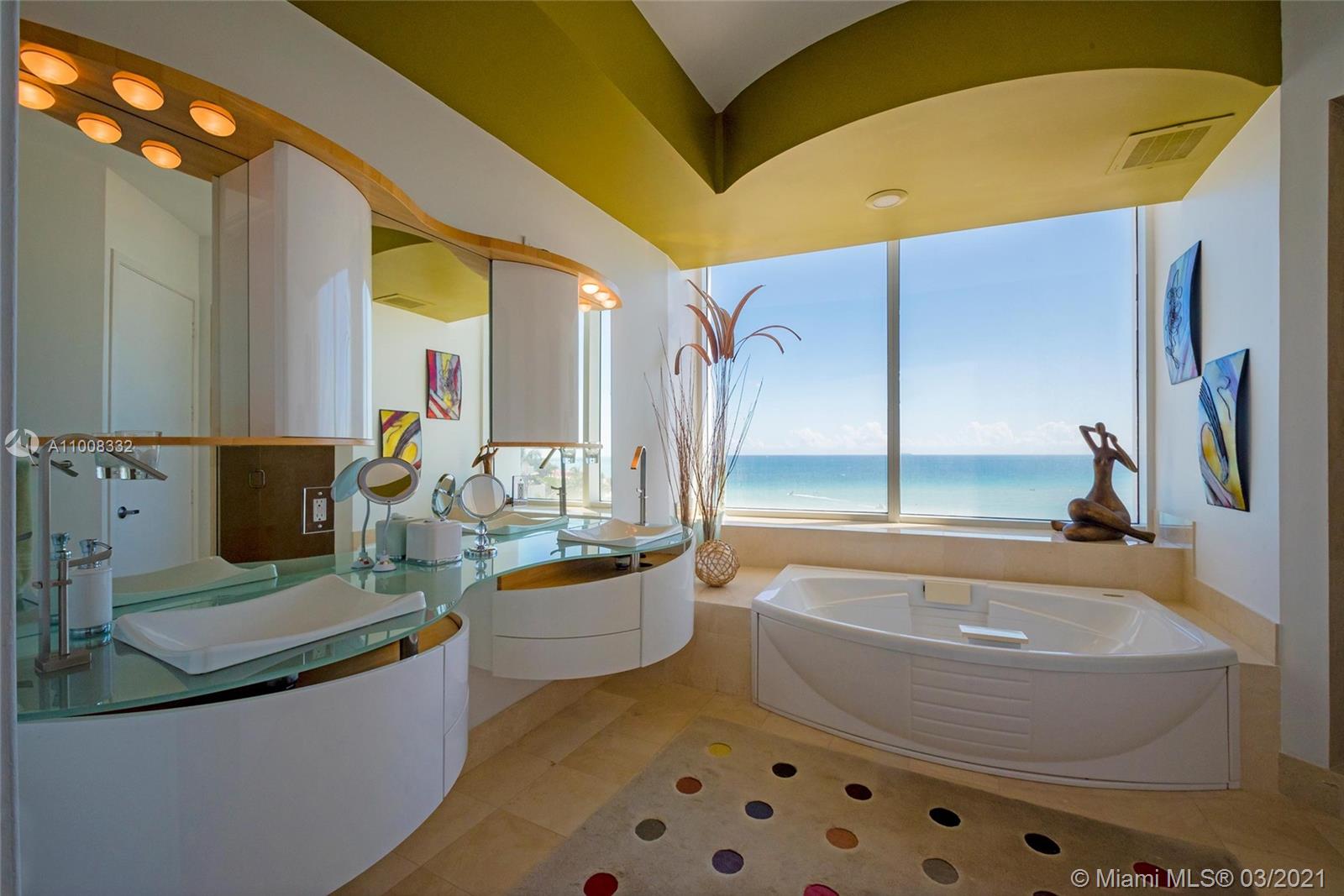 The most Wonderful and Stunning Residence with the only wraparound Terrace in the entire building! Feel the Ocean with directs views, relaxing in this Resort Style Living oceanfront with beach services, on a pristine beach with a magnificent landscaped, water activities pools, Jacuzzis, waterfalls, snack bar, Restaurant on the beach, Tennis courts, Dog Pavilion, Party & Billiard Room, Spa & Gym, Bicycle Storage, Children’s Playroom, Concierge, 24 hours Security, Valet, and all the unique amenities from Trump Grande Resort, full-service Luxury Hotel gives to you the benefit to use all the facilities: Beach Cabanas, SPA Service, Restaurants, food and beverage delivery service, and much more. Residence offers private elevators, marble floors, its ready to move, One of a kind!