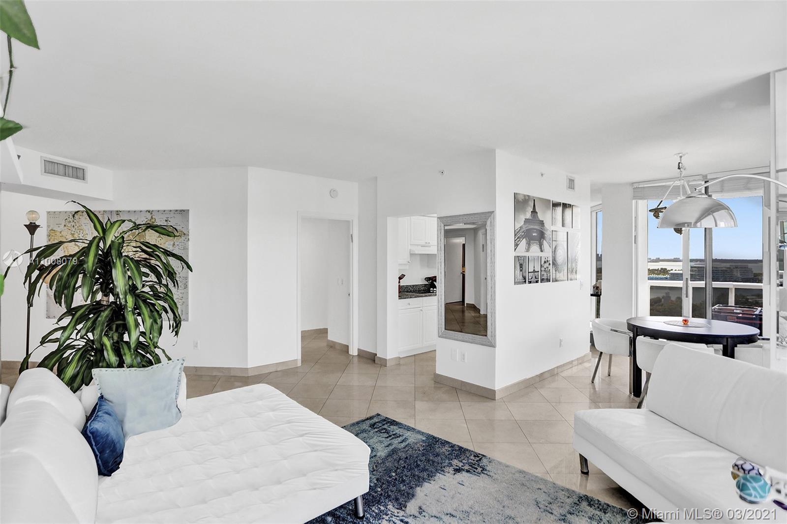 Enjoy views of the city, bay and ocean from this 2/2 NW corner unit at the Blue Diamond. This residence offers: floor to ceiling glass windows, eat-in kitchen, wraparound balcony, dining room/living room, walk-in closets, spacious bathrooms with marble floors, split floor plan, washer/dryer and more. One assigned parking space is included. Building offers 1st class amenities: 24hr security, valet, concierge, tennis court, pool/hot tubs, café/market w/ room service, 16,000 sf clubhouse/spa, gym, personal trainers, party room, children’s play room, billiards, business center, beach attendant and more.