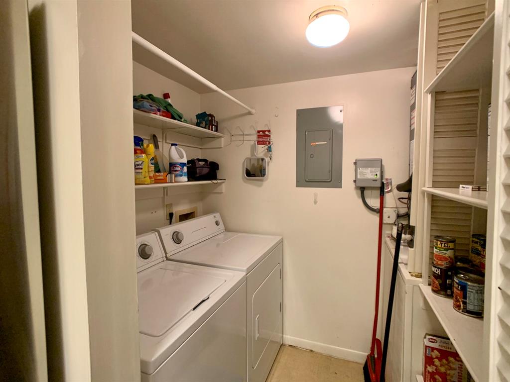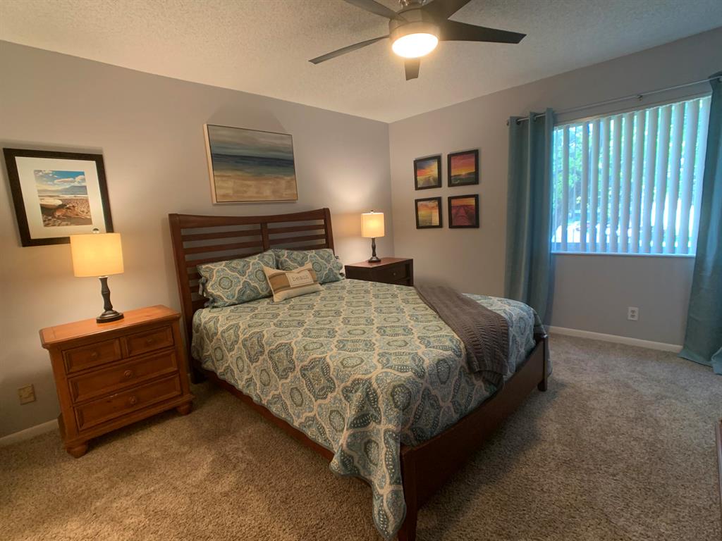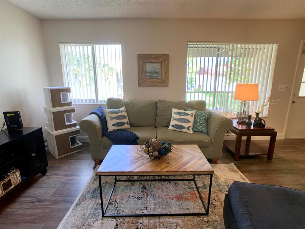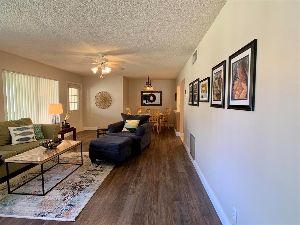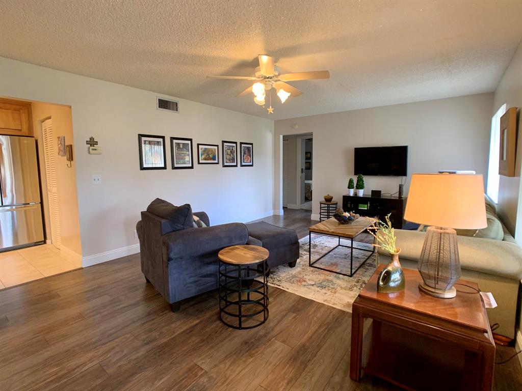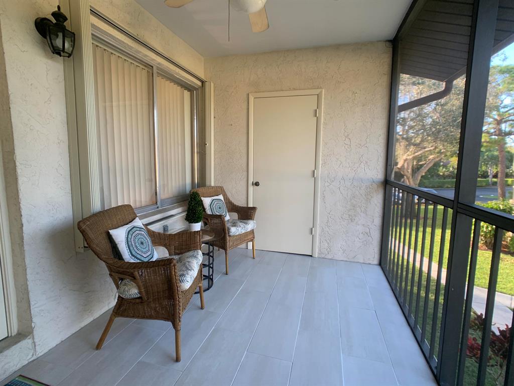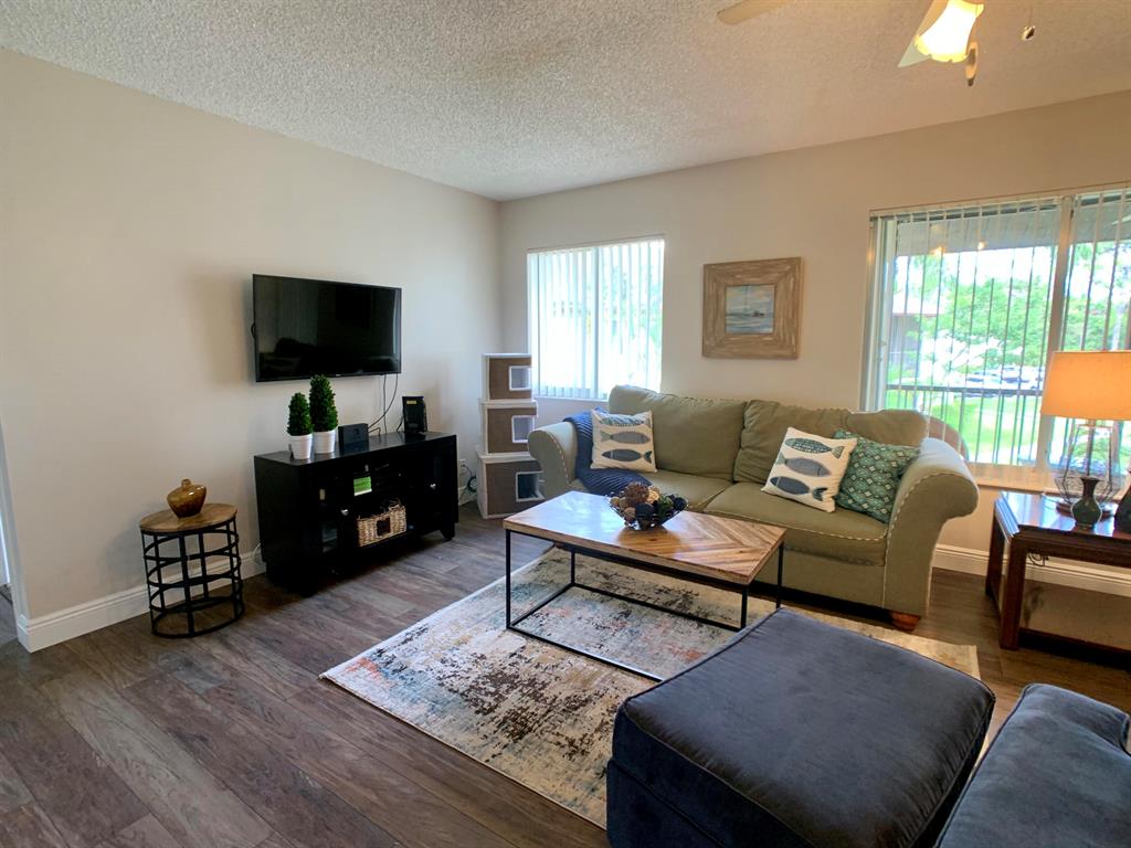 Lovely updated FURNISHED condo in a well-maintained, gated community. LOW MONTHLY FEES! Renovated kitchen with SS appliances and 42'' cabinets, full washer/dryer in adjoining laundry room complete with pantry. Beautiful luxury laminate flooring in living in dining area; each bedroom has spacious closets. New tiled flooring on balcony, which also has storage closet and new screening. Full set of accordion shutters! New roof on the building in 2019. This building is situated at the rear of the community, surrounded by lots of green space. Pine Ridge is a quiet, gated community centrally located to many points of interest, shopping, dining and major highways. This is a great starter home, a great home for those downsizing or a great investment (leases okay with no waiting time). SEE IT TODAY