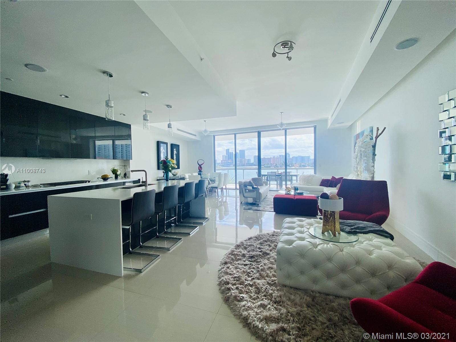 LUXURY BUILDING WITH BAY VIEW. Gorgeous unit with private elevator. 3 bedroom and 4.5 baths + Service suite, marble floors, private elevator, gourmet kitchen, subzero appliances and wine storage, wolf gas stoves, summer kitchen in a huge balcony. Customizes closets, blackouts curtains on all the bedrooms and living room. Unit features ceilings; apple home technology, personal services define ultimate luxury. This resort style unit has a total of 3,215 square feet, including the balconies, with a full functioning maid quarter and a full laundry room. State of the art amenities with infinity pool, a complete gym and SPA, valet. Unit comes with 2 parking spaces and storage. Just in front best school of Aventura minutes from malls, restaurants and beaches.