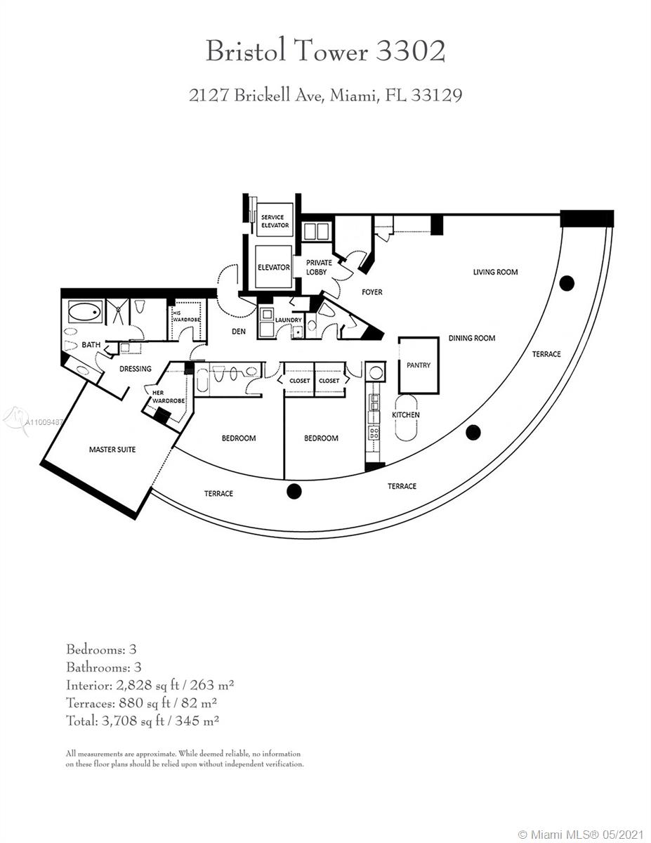 I am interested in Bristol Tower Condo 3 bedroom Condo For Sale in Miami, MLS# A11009487