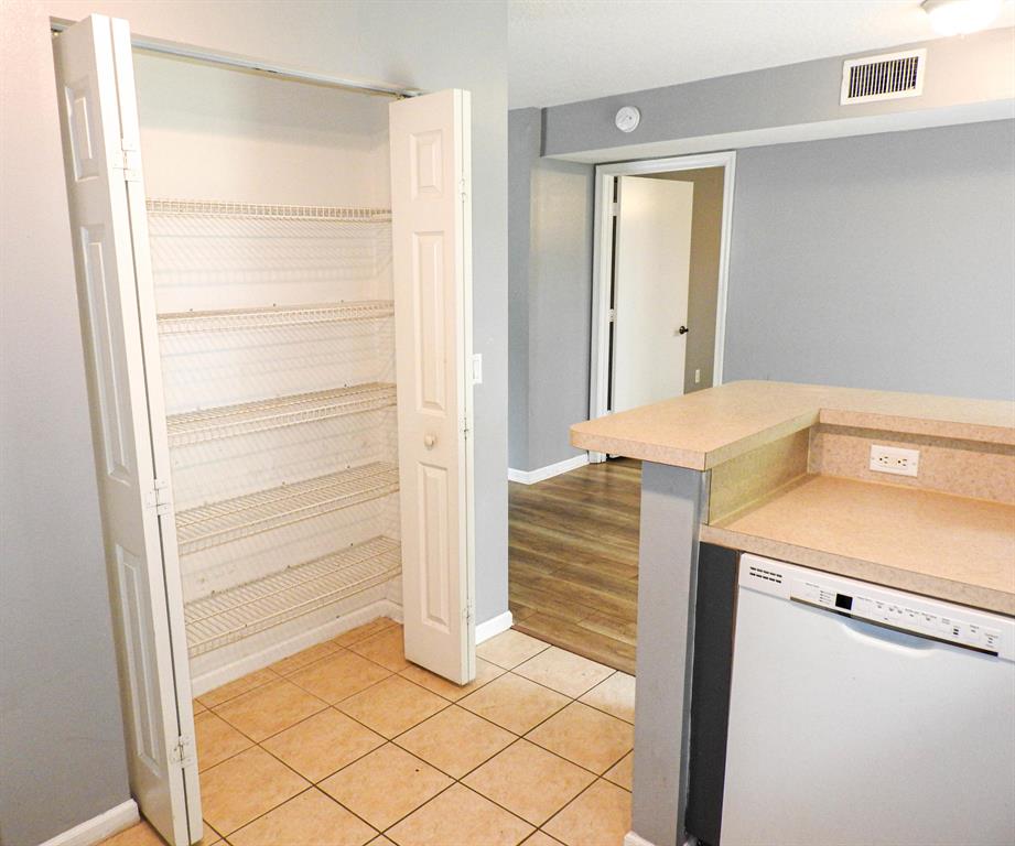 Great 3 bedroom, 2 full bath condo on first floor in a gated community with community pool. Well maintained condo with 2017 A/C, 2015 Water Heater, and washer/dryer in unit. Entering from a covered entrance, this condo features wood-look laminate floors throughout the living areas and bedrooms and tile in the kitchen and bathrooms. The kitchen has fossil grey cabinets, newer white appliances, garbage disposal, double stainless steel sink, colored formica counters, overhead 3-light track lighting, and a formal 5-shelf pantry. All bedrooms have easy push/pull upgraded blinds, knockdown ceilings throughout, and privacy glass in the living room to bring in light. Exit the back slider to a tranquil and private green space