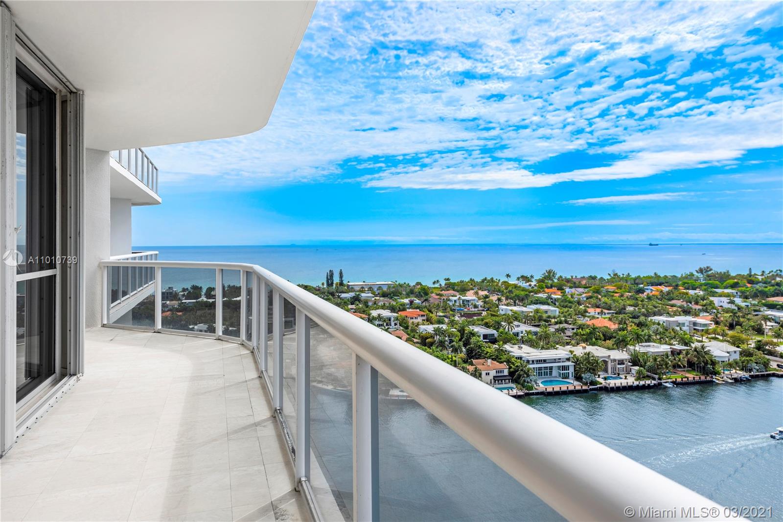 Spectacular views from this fully furnished 2 bedroom, 2/1 bathroom corner unit in the very desirable "One Island Place". Private elevator entry into this updated unit. From sunrise to sunset enjoy breathtaking views of the ocean, intracoastal, Waterways Marina and city. The unit is large and boasts a great split floorplan with an office & laundry room. Building has great amenities such as spa, fitness center, tennis courts, swimming pools, card rooms, library, conference rooms, valet, front desk attendant and more. This is a must see and pleasure to show. 2 parking spaces and storage unit included.