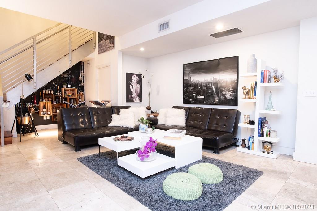 This beautiful 2-floor modern town-home/condo, with high ceilings, is situated in what used to be an ancient synagogue. Now fully renovated, located in the heart of South Beach only a block away from Lincoln Rd. Travertine marble floors on the first level, open kitchen, black granite countertop & GE stainless steel appliances. Modern aluminum staircase leads to the second floor. Beautiful spacious hallway leads to both bedrooms. Brazilian cherry wood floors. Custom closets in each room. Building is secured & gated. Beautiful landscaping & small patio! Maintenance includes water, cable and Internet. There currently is a tenant in the unit on a month to month deal, for more info and/or showings please text or call listing agent!