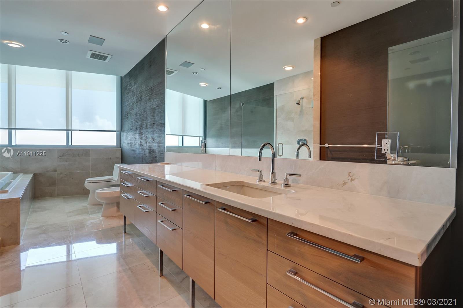 BREATHTAKING VIEWS OF OCEAN AND CITY FROM THIS 45TH FLOR 2 STORIES PENTHOUSE. FLOW-THROUGH UNIT, WITH 4 BALCONIES, OUTDOOR JACUZZI ON EAST TERRACE, OPEN KITCHEN, MAID QUARTERS, MEDIA ROOM. 22 FT CEILINGS, TOP OF THE LINE FINISHES, MODERN STAIRCASE LEADING TO SECOND FLOOR, HUGE MASTER CLOSET. JADE BEACH OFFERS GREAT AMENITIES, POOL AND BEACH SERVICE, SPA, GYM. IN THE HEART OF SUNNY ISLES, CLOSE TO SHOPPING PLAZAS, BAL HARBOUR, AVENTURA MALL. SEE BROKER REMARKS.