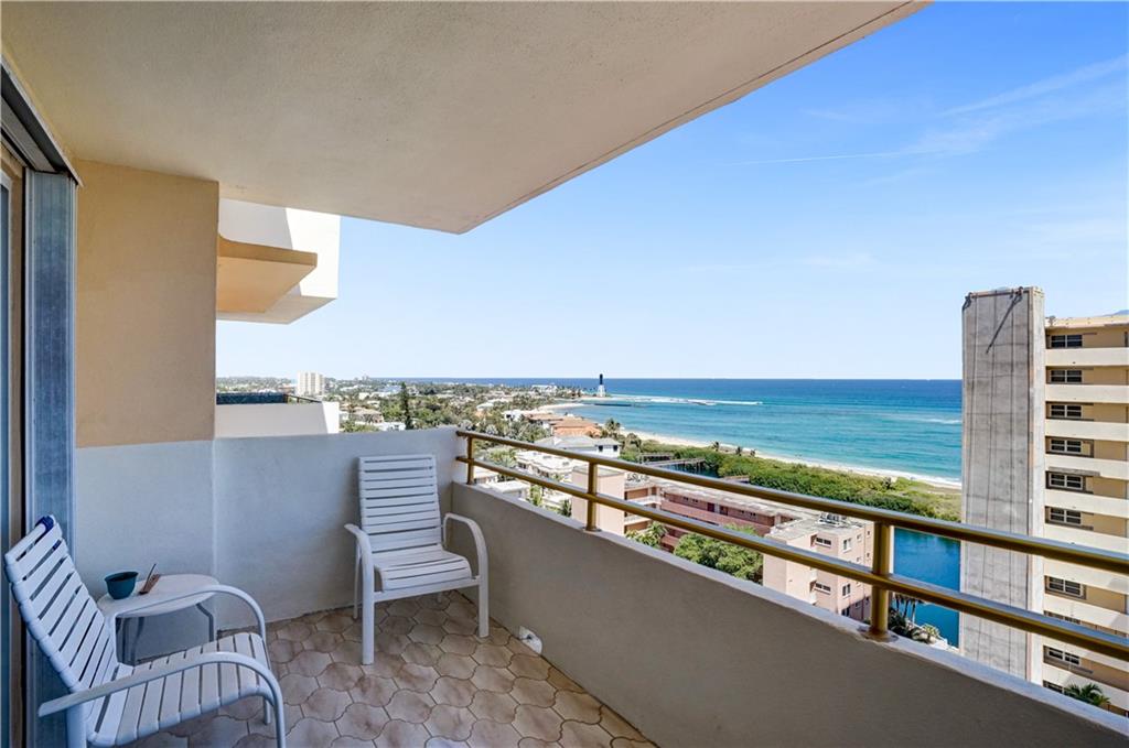 Wake up with a Million Dollar View! Located right next to the Hillsboro inlet this 12th floor unit has all the views. Intercostal when you walk out the front door and the ocean from the balcony and Master bedroom! This condo has direct access to the beach and an amazing putting green with the ocean as your backdrop. This is a turn key condo, new countertops, new vanities and high performance vinyl flooring! All permitted of course.
