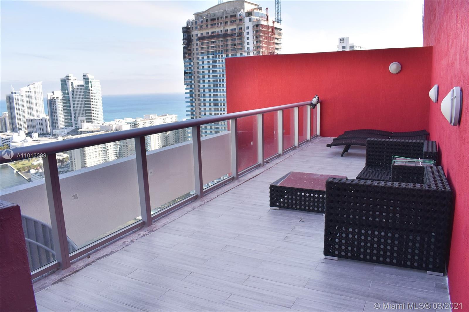 FANTASTIC OPPORTUNITY TO OWN A LUXURY PENTHOUSE WITH VAST OCEAN, INTRACOASTAL AND CITY VIEWS. UNIT HAS BEEN UPGRADED WITH CUSTOM CLOSETS, BATHROOMS WITH SHOWERS, CERAMIC FLOORS AND IS VERY WELL MAINTAINED. THIS AMAZING PENTHOUSE HAS A LARGE BALCONY AND ADDITIONAL HUGE ROOF TOP TERRACE WITH NEWLY FLOORS READY FOR ENTERTAINING! THIS HOME IS PERFECTLY FURNISHED, NO RENTAL RESTRICTIONS SO CAN BE RENTED DAILY, WEEKLY, MONTHLY OR YEARLY!!! MAINTENANCE FEE INCLUDES EVERYTHING! FPL, INTERNET, CABLE, AMENITIES, WATER... THIS PENTHOUSE COULD BE A PERFECT SECOND HOME AND RENTAL PROPERTY. AMAZING AMENITIES AND BEACH CLUB ACCESS WITH CHAIR AND TOWEL SERVICE! YOU MUST SEE IT!!!