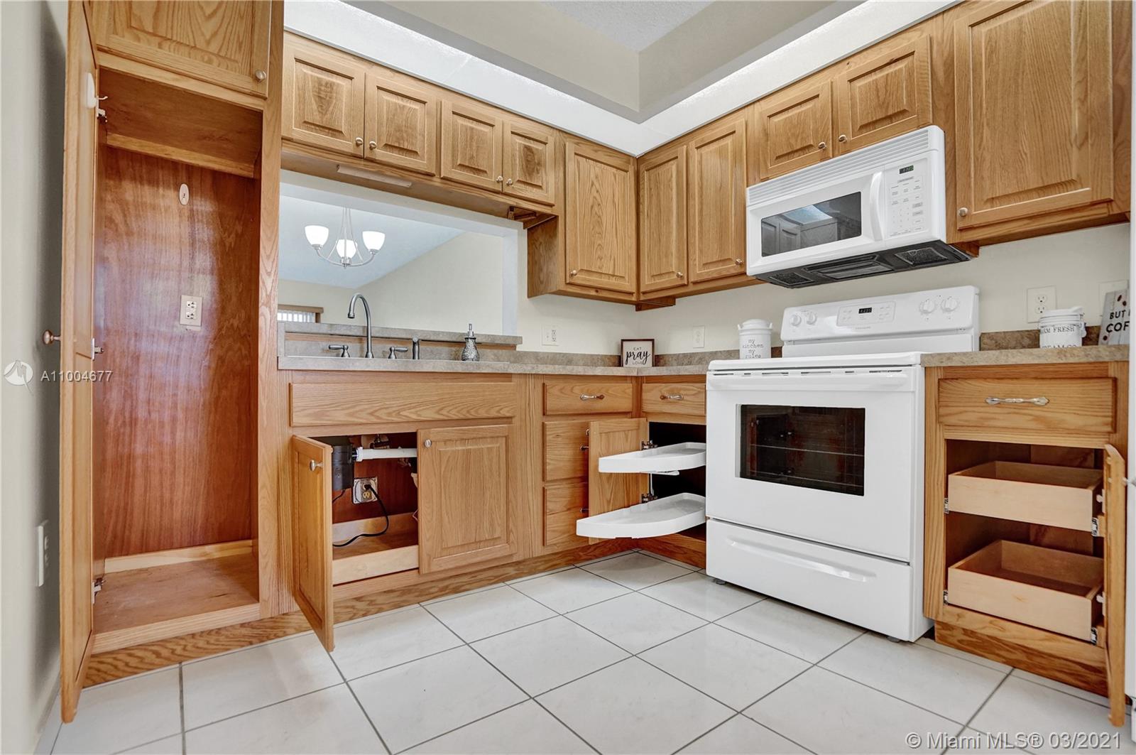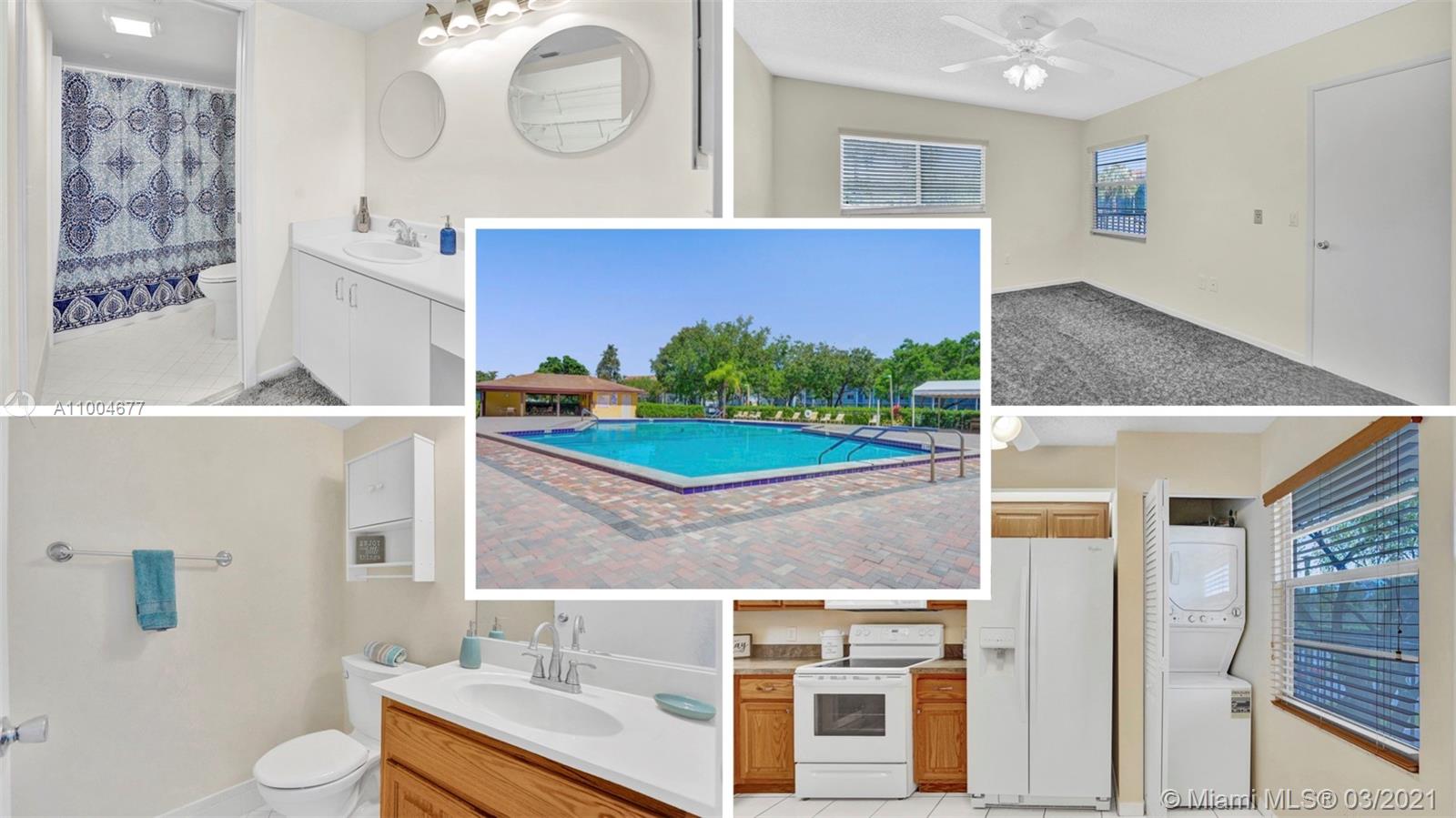 It's time to relax and enjoy the 55+ lifestyle! Step inside this freshly painted 2 bedroom 1.5 bath move-in ready condo in Century Village. Enjoy cooking in this renovated kitchen that includes cabinets with pullouts, new disposal and entertain those in the dining room easily with the pass through from the kitchen. If outdoor relaxation is on the menu, retreat to the screened-in balcony overlooking the pool area. Two large bedrooms with ample closet space and great lighting. Master suite has a vanity area to allow for privacy while in the shower. Laundry? Not to worry. This is one of the units that has a washer/dryer in the unit. Location is just a short walk to the pool/tennis courts & SO many more activities at the clubhouse. Community has transportation to grocery store and shopping.