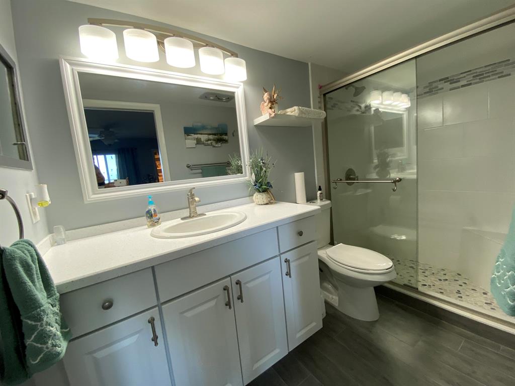 This gorgeous two bedroom ,two bath condo has been totally renovated! The kitchen boasts a glass subway tile backsplash ,upgraded cabinets ,granite countertops and newer appliances including a double oven. The kitchen is open to a lovely dining area and beautiful living room with new front windows and shutters, levolor shades and new a/c. There are two newly renovated spacious bathrooms. Beautiful ceramic tile runs throughout the condo. Relax in the spacious lanai while taking in the breathtaking views through the floor to ceiling windows. This one is a must see ,it wont last for long!