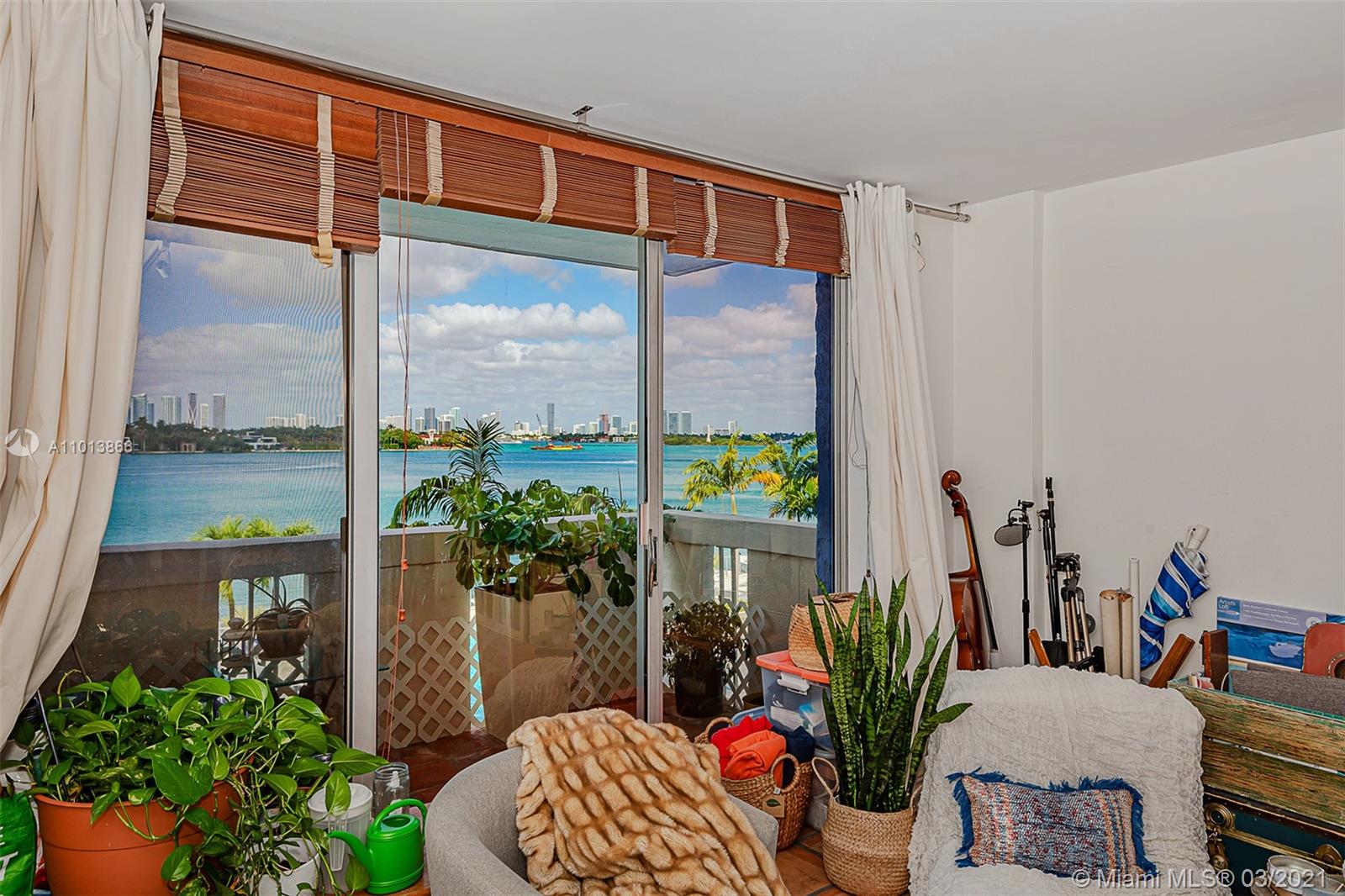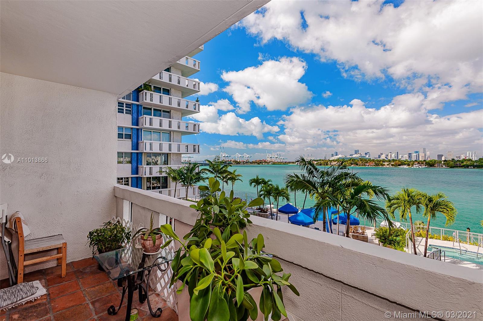 Fantastic direct bay views from the living room, balcony, & bedroom also of the pool & jacuzzi directly below the unit. The updated kitchen has granite counter tops & stainless steel appliances. There is a all-in-one washer/dryer unit in the kitchen that saves space. Tile floors throughout. It has 1 assigned parking space & the building offers guest parking. 1 pet under 26 pounds is allowed. Building amenities include a fitness center, recreation room, barbecue area, 24 hour front desk, and sitting areas in the waterfront pool patio area. Card entry or front desk access to the living areas for security. There are boat docks available for rent through the building association. Coming home to your condo is like being on vacation with all these amenities.