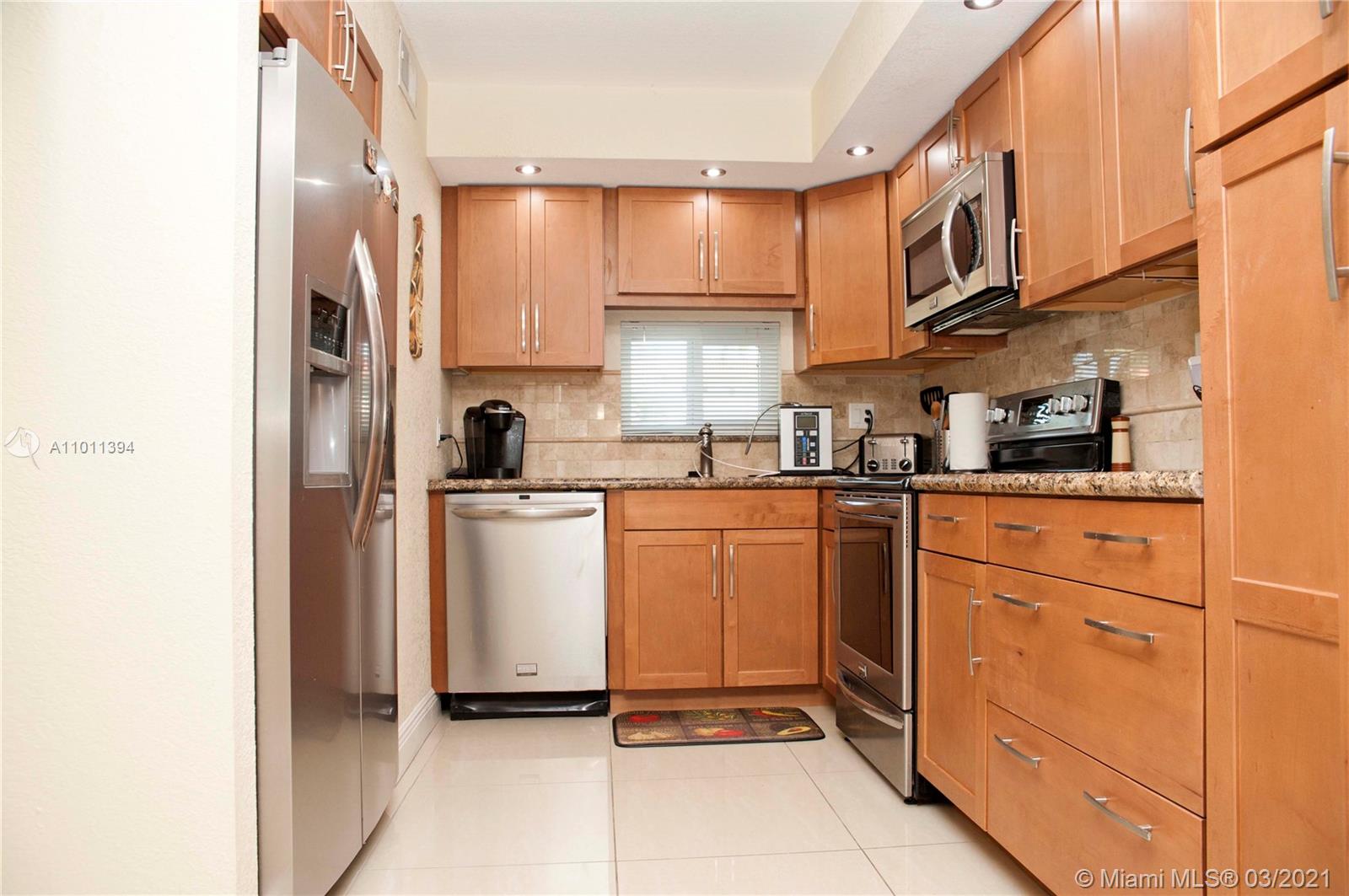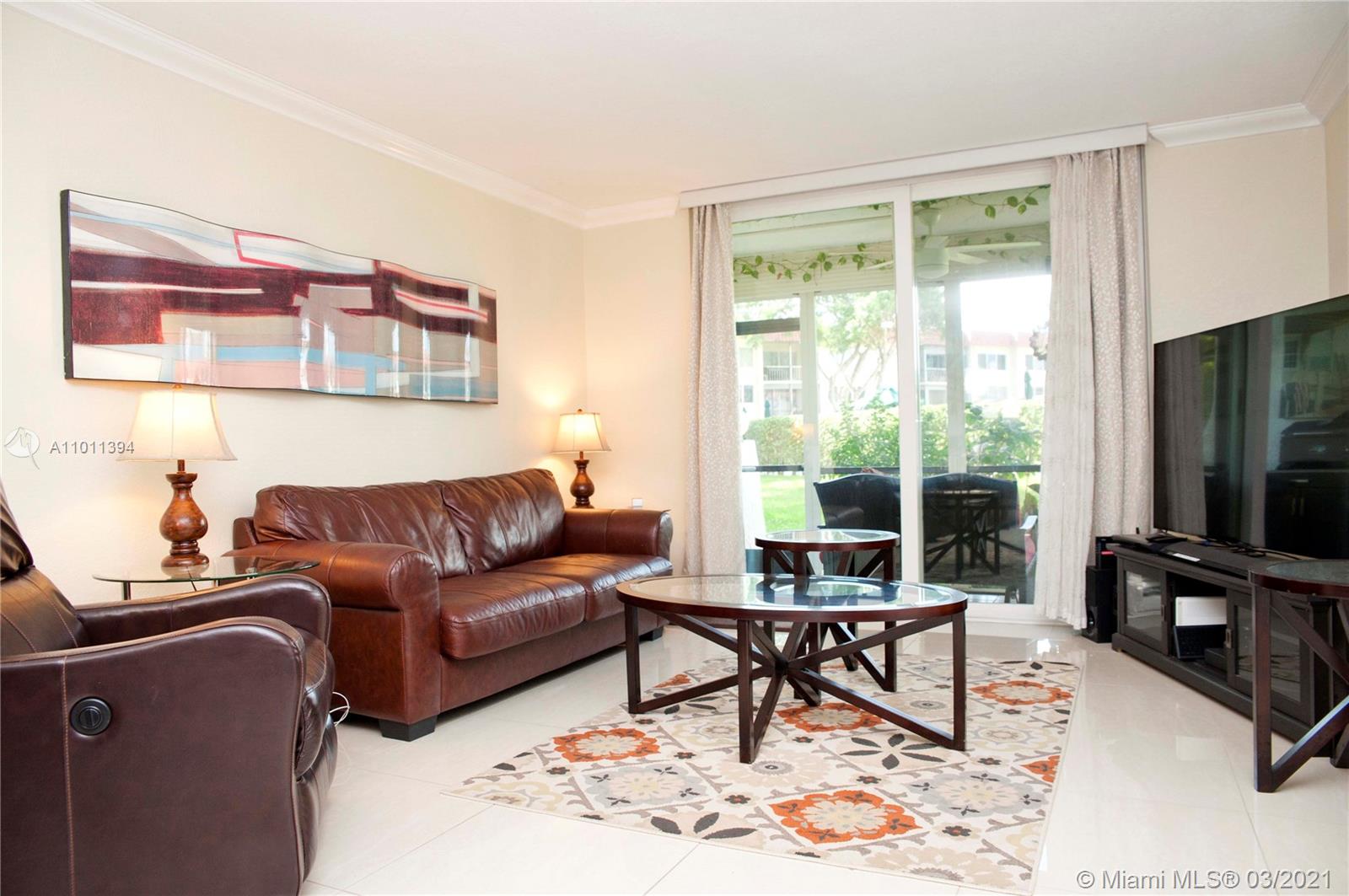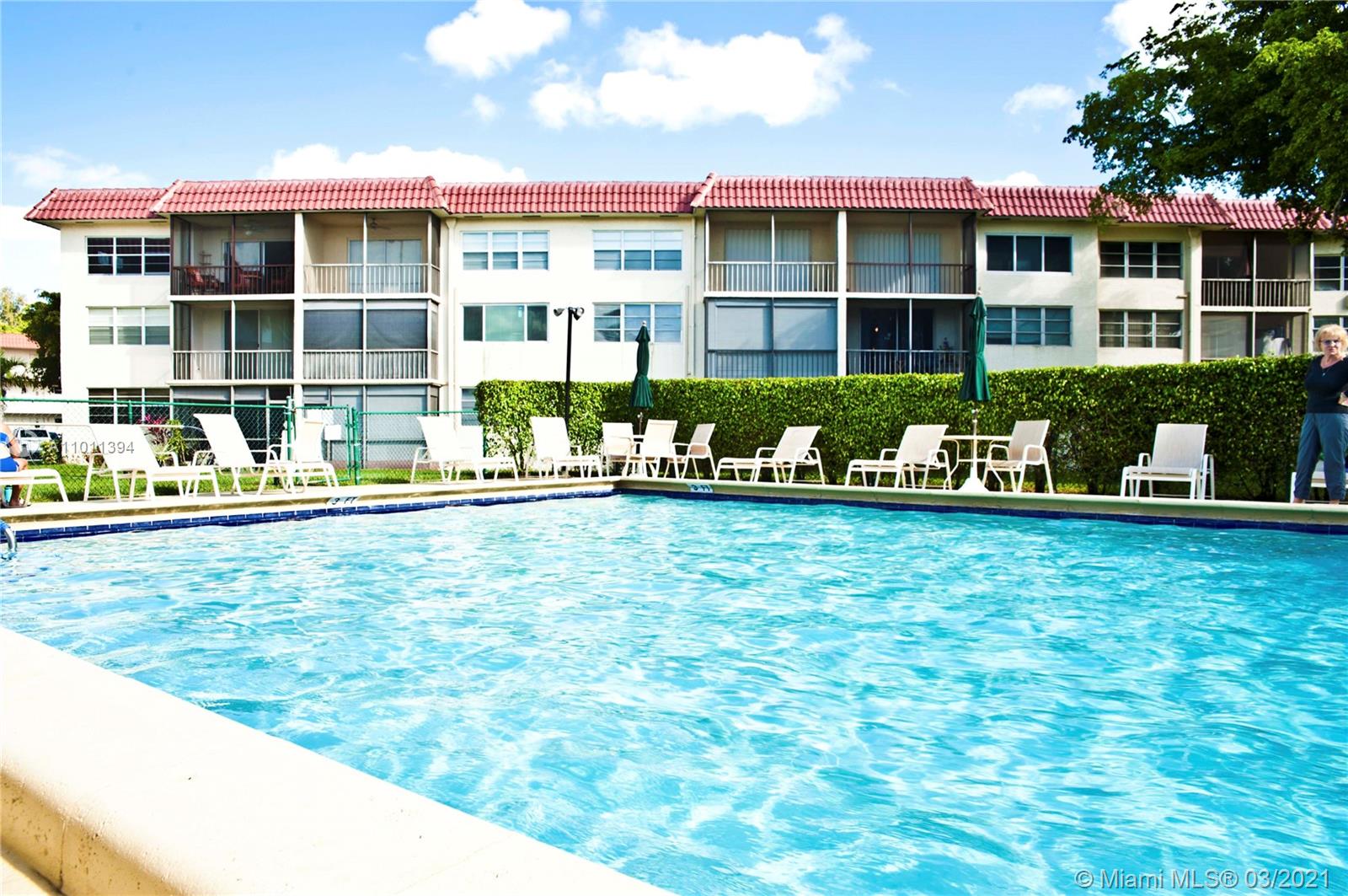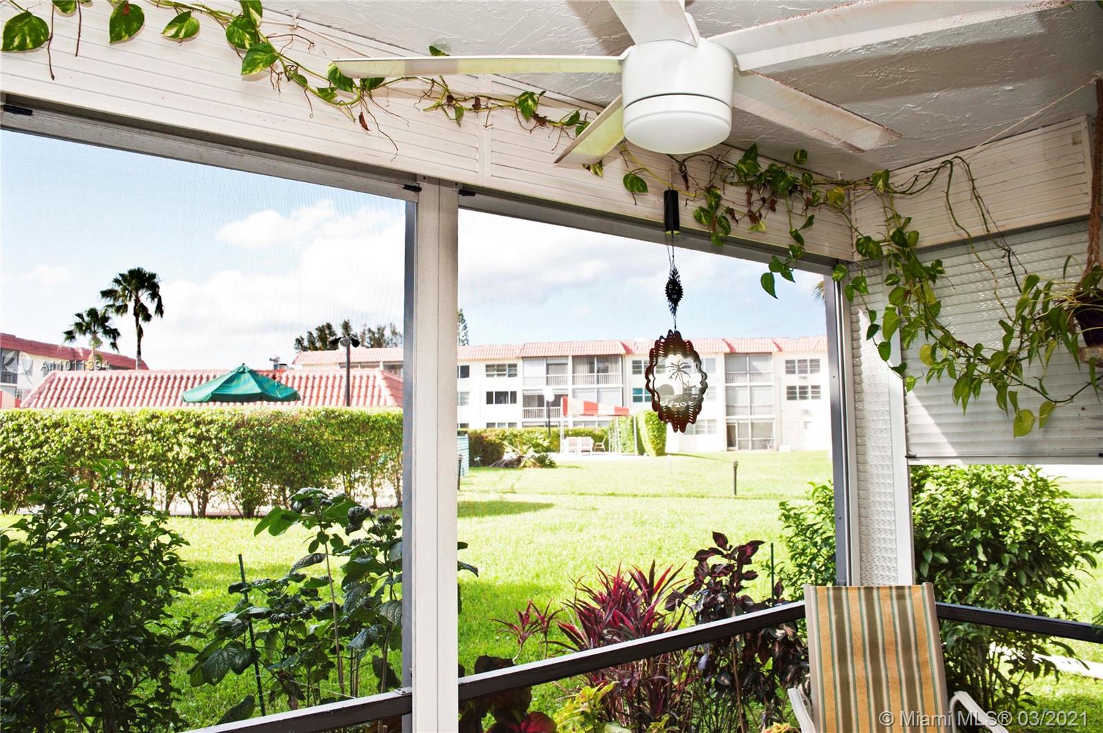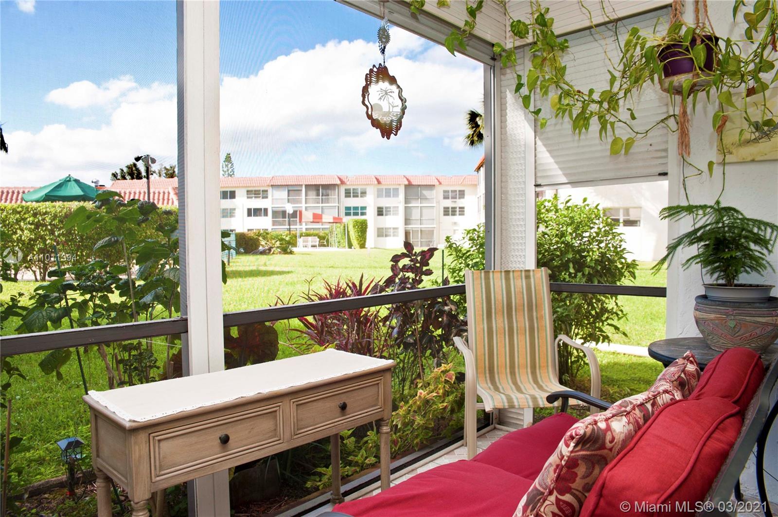 55+ gated community! Totally upgraded and spacious 2Br/2Ba condo, galley style kitchen with granite counter, wood cabinets, stainless steel appliances. Hurricane impact doors and windows, 2018 AC, washer & dryer inside. Tile and wood flooring, both bathrooms are upgraded. High quality furniture is included in the sale. Enjoy the lawn and pool view from your screened patio from this 1st floor unit. Then walk across from your front door to enjoy the recreations area and pool in front. Paid up rec lease. Free golf, 14 tennis courts, 7 pools, theater, fitness center, restaurant, 24hr security. IMPORTANT! See Broker Remark for occupancy qualifications!!! Easy to show!