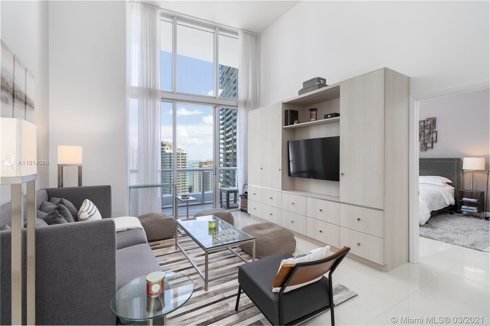Rarely available 1-bedroom with 14 ft ceiling and direct bay views at Icon Brickell Tower 3. Turnkey furnished with no rental restrictions. Short-term rentals allowed. Best and most desired 1-bedroom floor plan. Large bathroom with double sink vanity. Really one-of-a-kind! The Icon Brickell is known worldwide for its impressive oversized bayfront pool and exuberant amenities. The property is surrounded by water, a boardwalk and two beautiful parks. Enjoy Miami’s most modern, posh and strollable neighborhood. No rental restrictions. Rent as you wish!