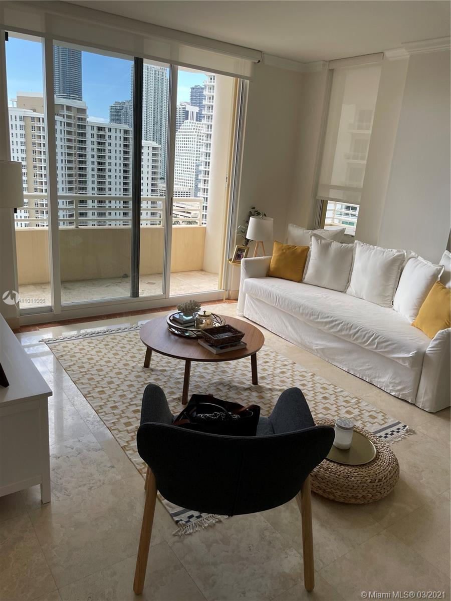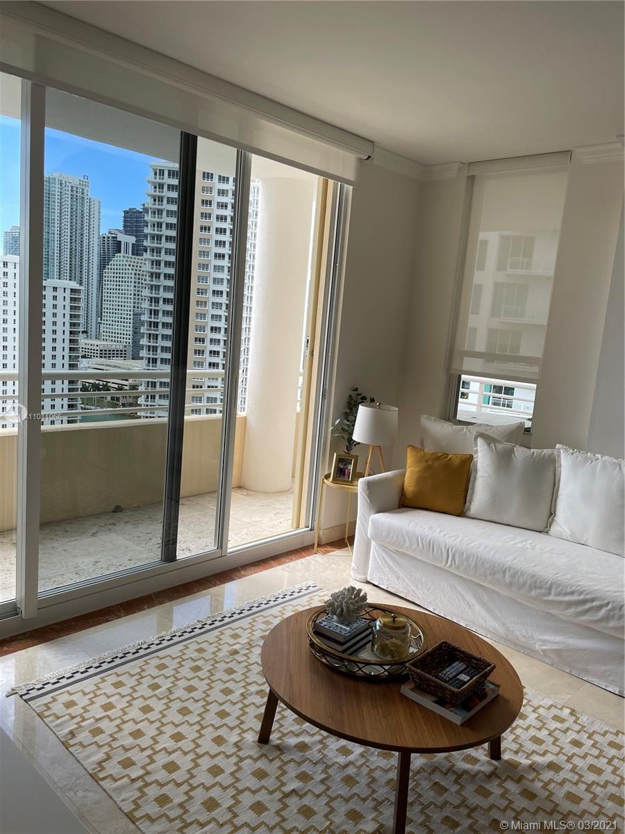 AMAZING ONE BEDROOM AND 1.5 BATH COMPLETELY FURNISHED UNIT 2302 AT PRIVATE ISLAND OF BRICKELL KEY. WALKING DISTANCE TO BRICKELL CITY CENTER, MARY BRICKELL VILLAGE SHOPS, GALLERIES, RESTAURANTS, BRICKELL FINANCIAL DISTRICT. BEAUTIFUL PATH TO WALK, RUN. 24HR OF SECURITY IN THE COMPLEX. GREAT AMENITIES GYM, SQUASH AND RACQUETBALL COURTS, POOL. SUNSET & SUNRISE BALCONIES, MARBLE FLOORING THROUGHOUT.