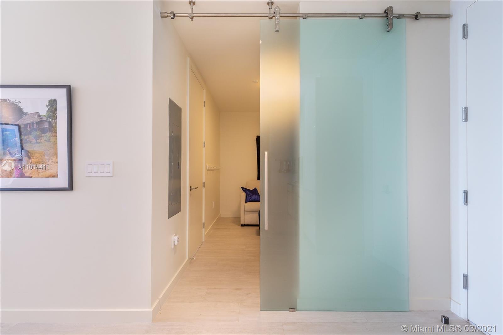 Reach out and touch the bay in Miami's newest & most exclusive waterfront development. Located in coveted Coconut Grove, this 2 bedroom/2 full bath plus enclosed den unit features 10 ft. ceilings, porcelain floors & expansive views of the bay. It also has a 413 sf private terrace, spectacular kitchen with Wolf & Subzero appliances, marble counters, custom blinds and closets. Located above the 20th floor, this unit's view clears Grove Tower & Yacht Harbor resulting in the spectacular panoramic view. The building has its own rooftop pool deck & sits on 6 waterfront acres with 550 feet of pools in the main amenities area, amazing gym and spa, and every amenity one could ever desire. Currently configured as 1 bedroom plus den as a wall has been removed which can easily be replaced. A must see.