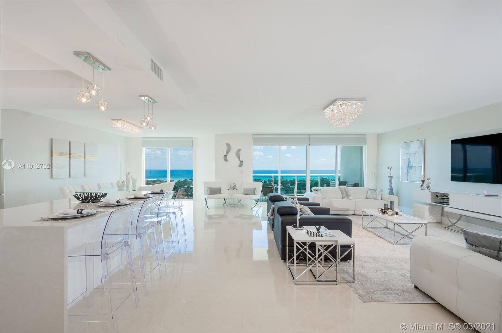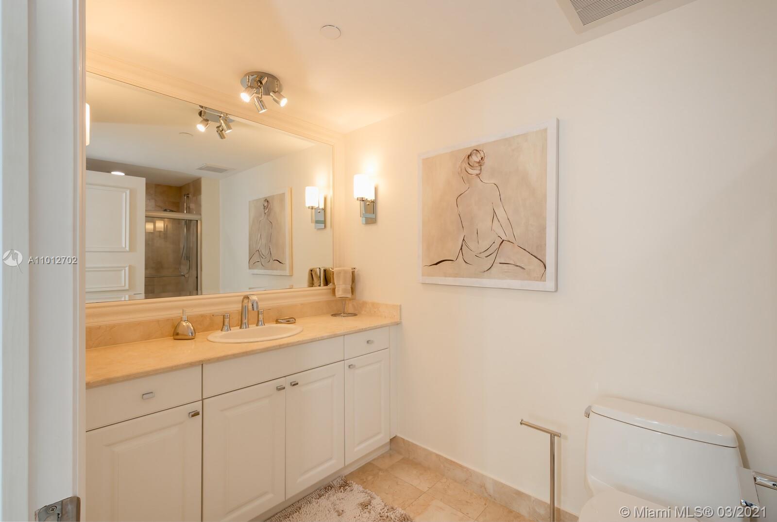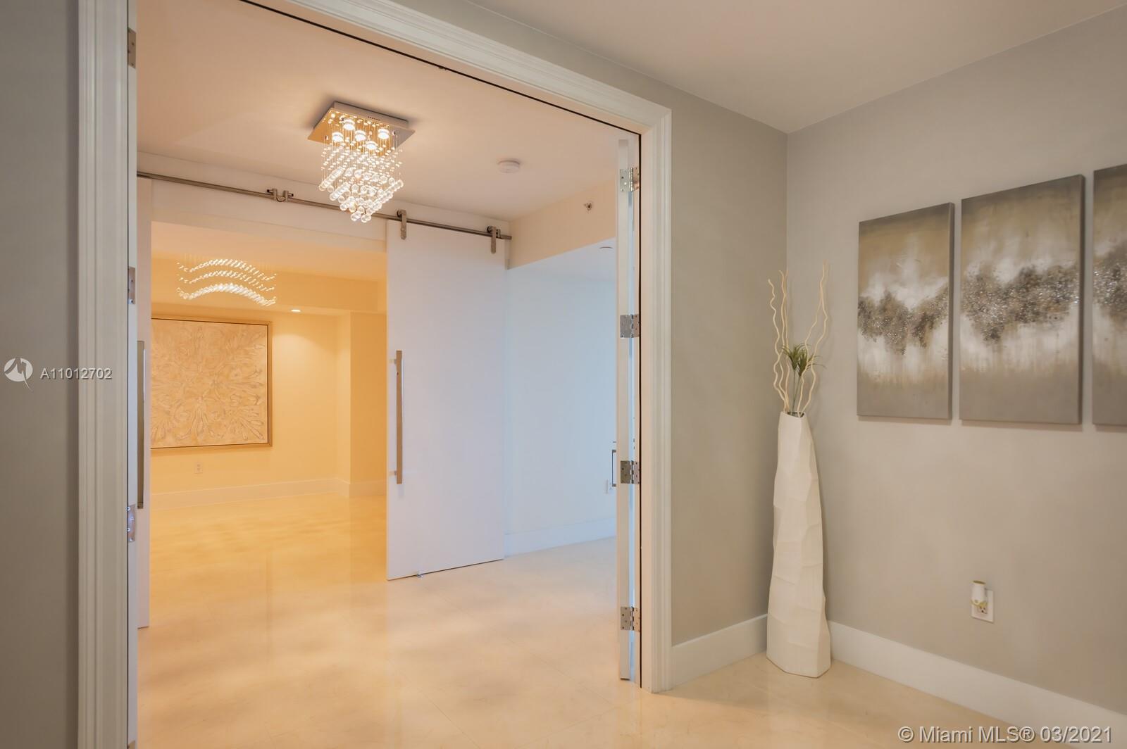 Have your office in an apartment with best direct East views to the Ocean, Intracoastal & Golden Beach. Views to the city and golf course, also. Located in the heart of Aventura. Residence has three bedrooms' plus Office, 3 bathrooms and a half bath. Modern open kitchen, dinning room and living room. Porcelain tile throughout, floor to ceiling impact windows, living room with remote control blinds. Condo with full amenities, two pools,4 tennis courts, restaurant, 2 gyms, racquet ball courts, yoga room and SPA.