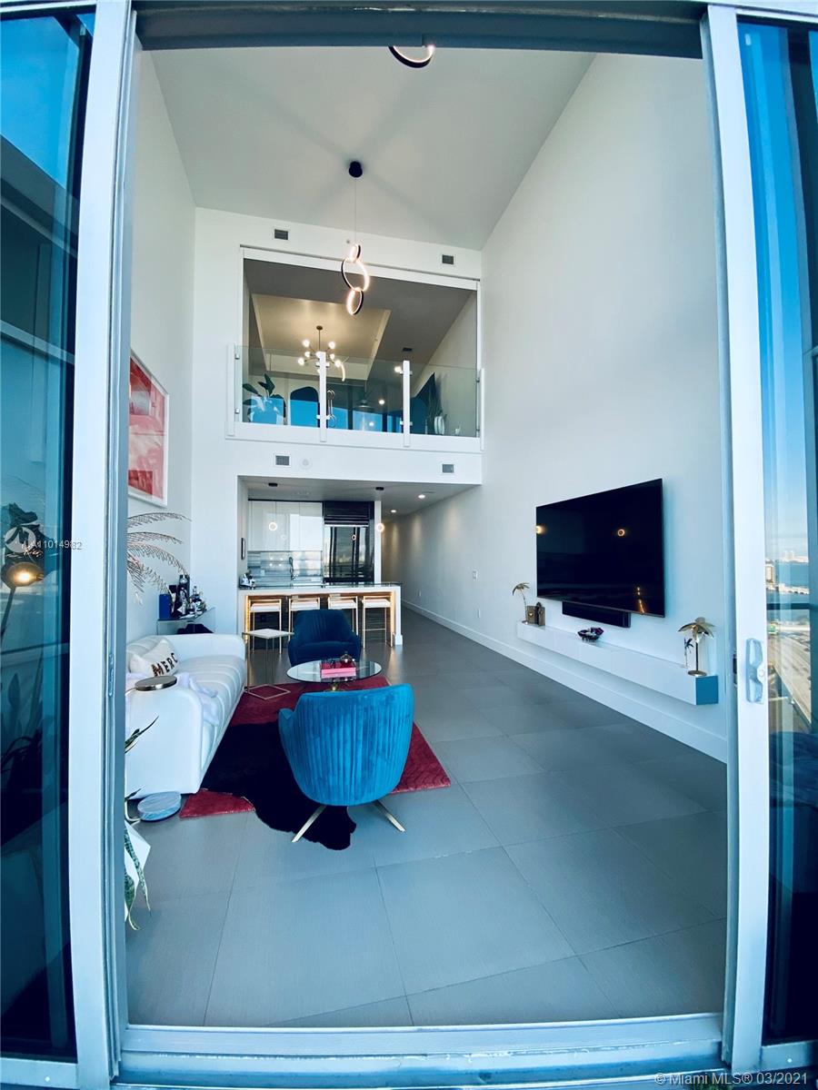 Stunning views of the Bay and Ocean from this spacious 03 line, impeccably cared for loft style 1/2 plus den/bedroom (23’ high ceiling) at the exclusive Marquis, a full service ultra luxury condo in the most dynamic area of Downtown. Kitchen boast Viking appliances & quartz countertops. Upgrades to this nearly 1,700sqft unit include brand new custom Italian kitchen upper cabinets, new custom master closet, sleek glass railing for loft and stairs, custom glass island countertop extension, modern LED lighting throughout, less than a year old high efficiency A/C unit, Custom wallpaper for a chic Miami vibe. Unit has so much more you must see. Option to purchase fully or partially furnished with just a year old modern-designer furniture. Tremendous value pricing for this home & easy to tour.