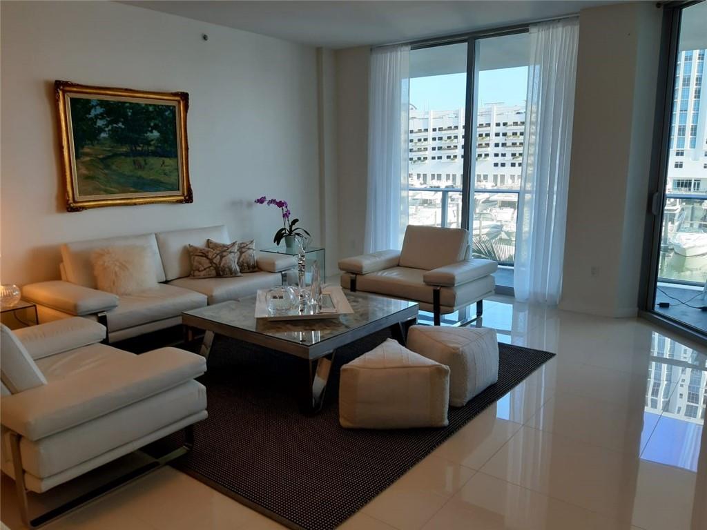 TO SHOW PLEASE MAKE AN ONLINE SHOWING REQUEST. Designer furnished waterfront condo (the sellers state they paid $50k for furniture). Please note the unit is leased until the end of the year. The least expensive condo unit in Marina Palms. Fantastic waterfront apartment with direct ocean access and water views and direct walkthrough access to connected garage (no elevator needed). 24 hours showing notice required.