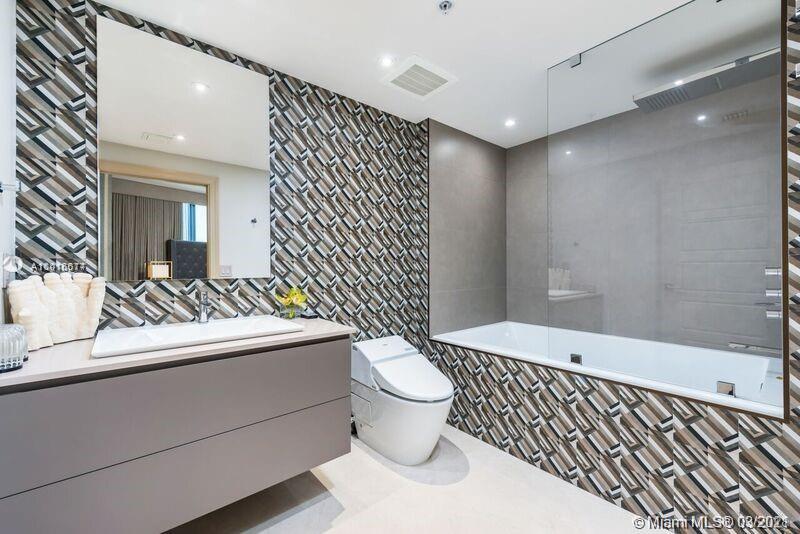 Beautiful designer renovated and furnished unit with over $300k worth of renovations with design district furnishing. Large 2br 3 bathrooms in Blue! Panoramic water view from every room! New bathrooms, kitchen, flooring. huge 4ft by 4ft marble floor throughout. Sub zero and Miele Appliances. all designer lighting and fixtures. easy to show.