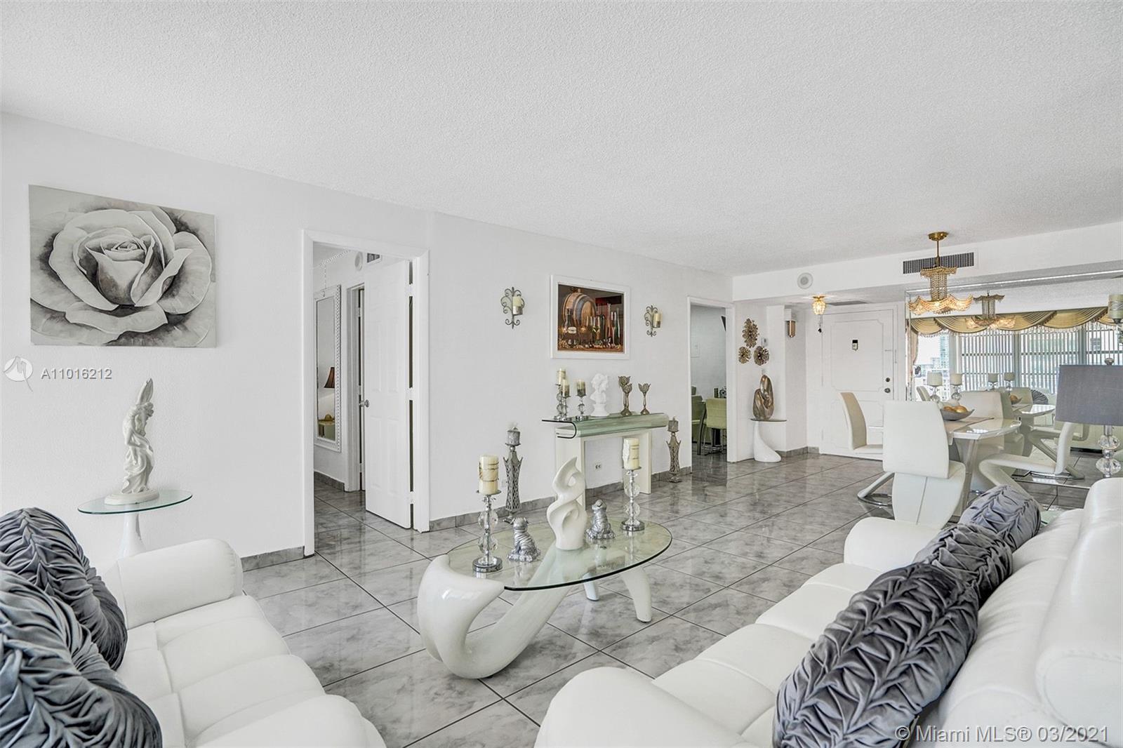 Why not just walk to the beach from this incredibly spacious 2/2.0 at one of Sunny Isles' finest buildings? Where else can you get so much space and so many amenities for such a low price? You are steps away from the award winning restaurants and nightlife that only Florida's Riviera can offer. This home might just have everything you need! The South facing balcony allows you to soak up the sunshine while enjoying the best ocean breezes. Winston 400 is a meticulously maintained building & offers a heated pool, gym, game room, & tropical manicured surroundings to welcome you home or any guest when visiting. This home has gleaming tile floors, spacious closets with built-ins, and a full sized kitchen. A floor to ceiling window lights up the living room & might just light up your heart too!