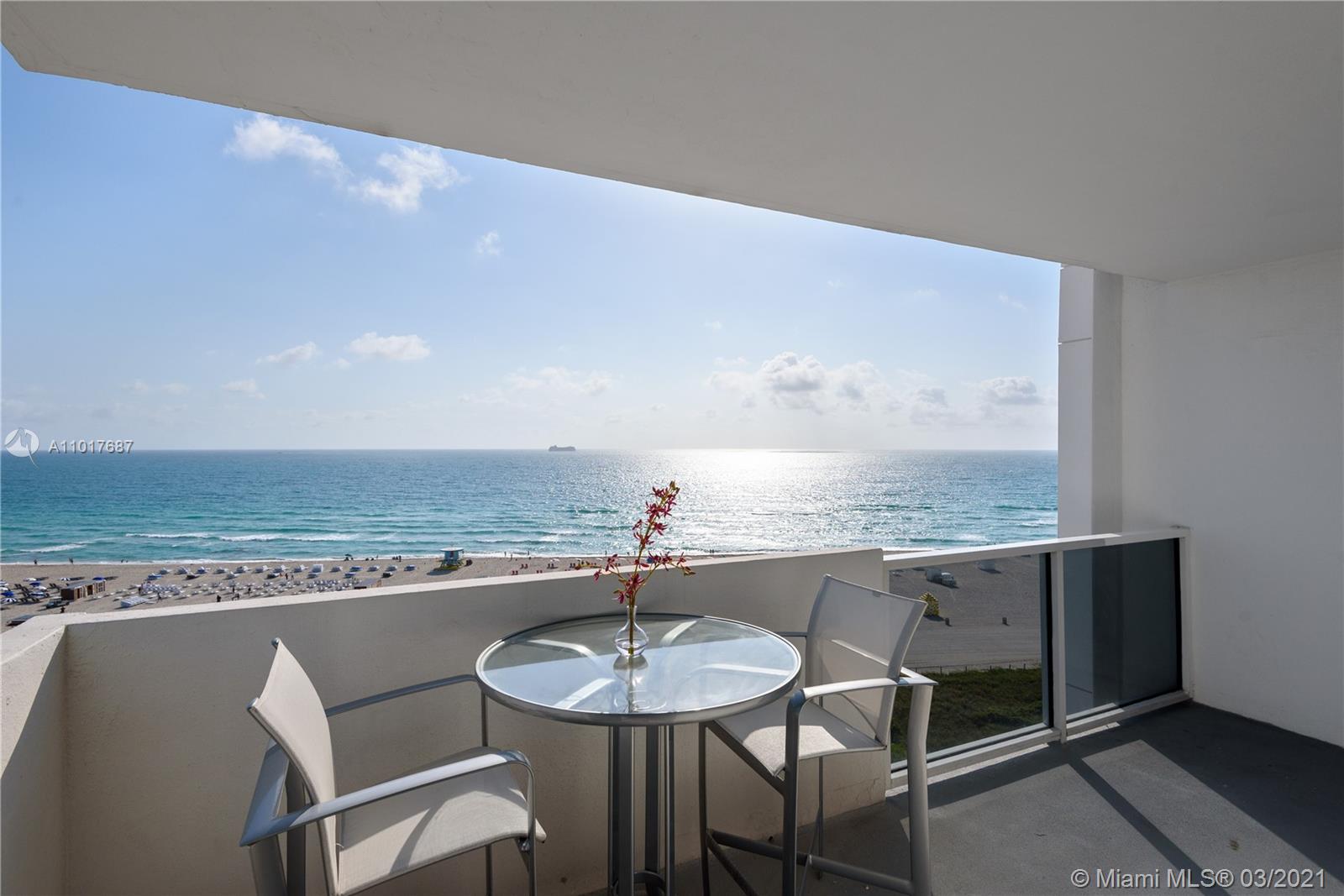 Perfect Pied-A-Terre with direct ocean views in the best location in South Beach. This spacious 2 bed/2 bath unit has been fully renovated & has spectacular views of the Atlantic Ocean. The building is located directly ocean-front on Lincoln Rd across from the Ritz Carlton & just steps from all that Miami Beach has to offer. This apartment has been meticulously updated & features a sleek contemporary kitchen with natural stone countertops & stainless steel backsplash, spa-like modern bathrooms, and furnished with high-end Italian furniture. Can be rented 12 times per year/30 day minimum. The unit features a 2nd entrance and the ability to close off the 2nd bedroom/bathroom as a studio with its own kitchenette. You are able to rent it out separately or together as one unit