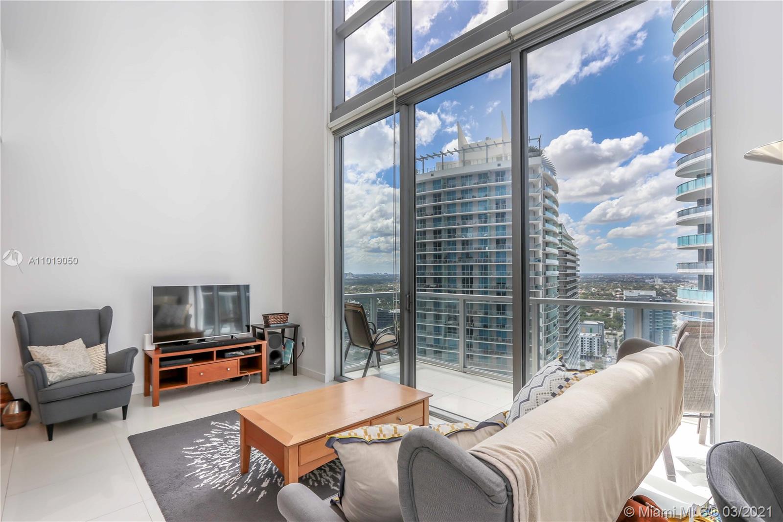 Gorgeous and charming 2-story loft-style bedroom /1.5 bathrooms unit with 24x24 marble floors in modern building in the heart of Brickell. Over 1100 SF of living area, high floor unit on full service building with state of the art fitness center and spa, wine and cigar room, 24hr concierge and valet, infinity pool and more. Close to fine dining and shopping, minutes from Miami airport. It won't last!!! Ideal for investors, rented to great tenants for $2200 per month.