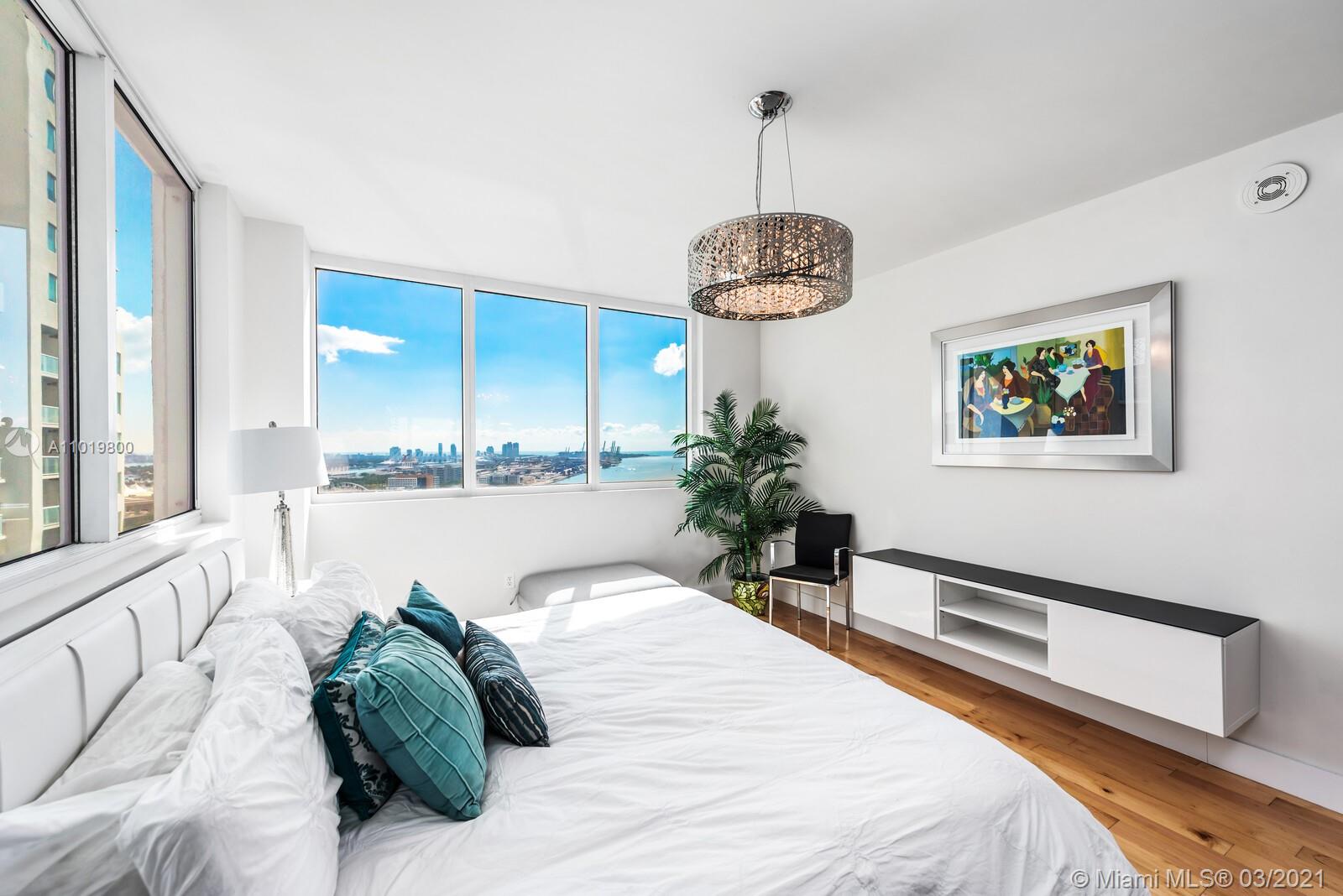 Fantastic 2 bedroom 2 bathroom corner unit with expansive water views! Impeccably enhanced and remodeled by the sellers. This is not only the nicest 2 bed facing the water BUT the best priced. Full Service building , 24 Hour Concierge , Business Office , Multiple Pools with a professional recently renovated Gym. Fantastic value in the middle of Downtown Miami's most progressive area. Steps to everything. Furniture not included , but negotiable. Easy to show!