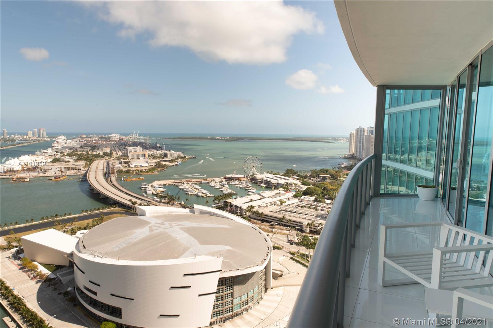 Prepare to be impressed when you enter this superbly maintained and presented high end luxury Condo! You wont find another unit like this one in the building. Best line in the building with a split 2 bedroom 2 1/2 bath floor plan. This unit offers the most beautiful panoramic views of the bay! Overlooking Bayside and the AA Arena! As a resident, you will have access to lifestyle amenities including a two pools with gorgeous view, gymnasium, communal terraces, concierge service and garage parking. Everything inside the condo is high end from the beautiful glass tile floors, stunning walls, Viking stainless steel appliances, and the most gorgeous bathrooms you will find. Completely remodeled! This is like living in a luxury resort year around. Minutes to Downtown, Brickell. Wont last!