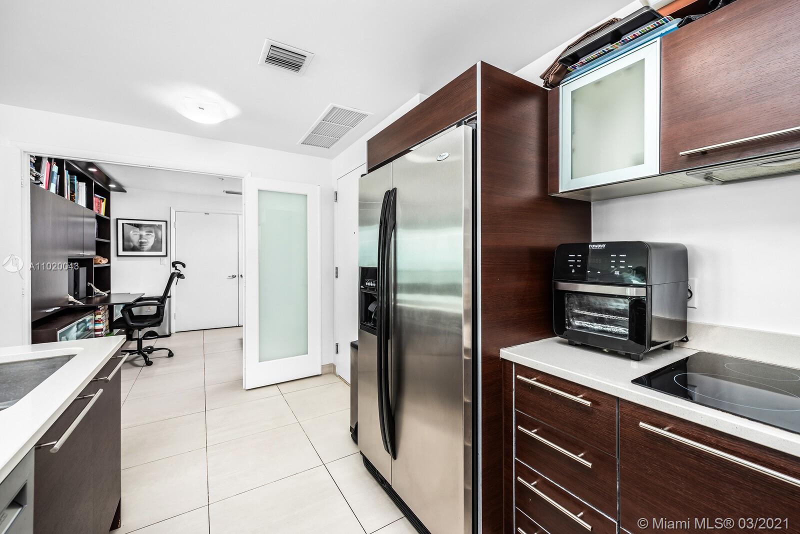 Rarely available 1 Bed + Den / 1.5 Bath at Quantum on the Bay in Edgewater. 2 parking spots side by side and 1 large storage unit included! Unit features a fully enclosed den w/ closet and custom doors and built-ins, tile flooring throughout, impact windows, fully-equipped kitchen with stainless-steel appliances, built out closets & newer washer/dryer. Building amenities include: 2 heated pools, 2 story gym, theater room, business center, party room, sauna, jacuzzi, valet, 24-hour doorman and on-site convenience store. Located directly across from Biscayne Bay and Margaret Pace Park which offers a variety of outdoor amenities including a dog park, basketball, tennis & playground. Blocks from Downtown, Wynwood and Design District, minutes to Brickell and South Beach, easy access to I-95.