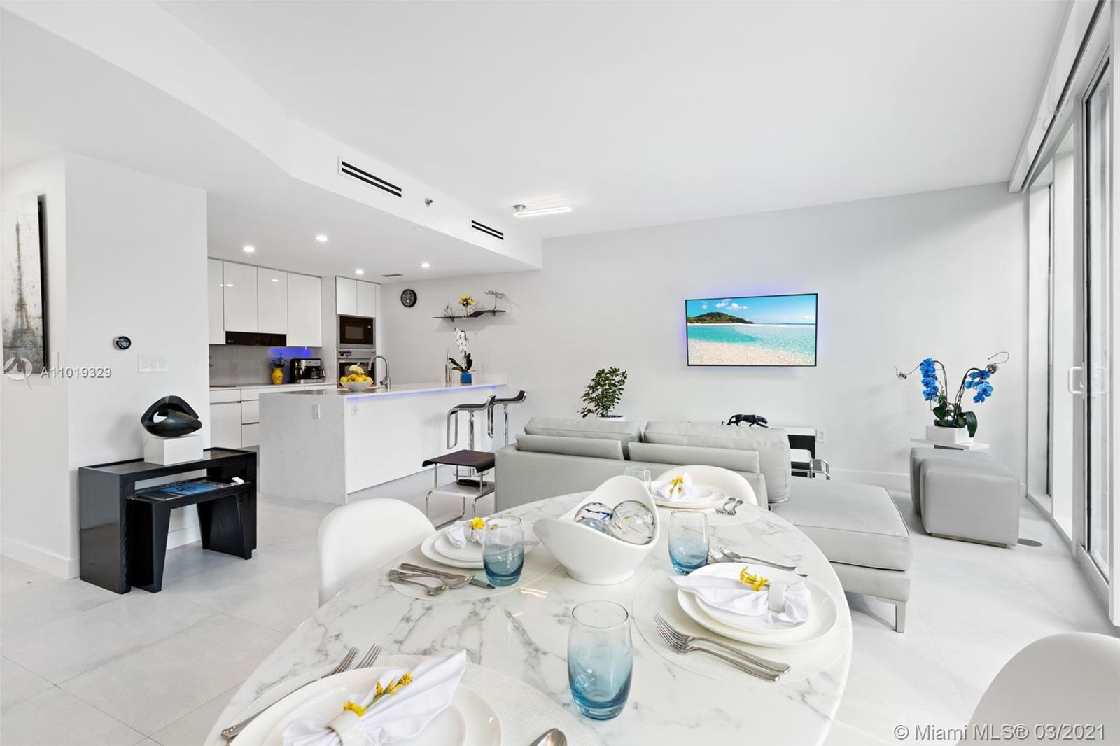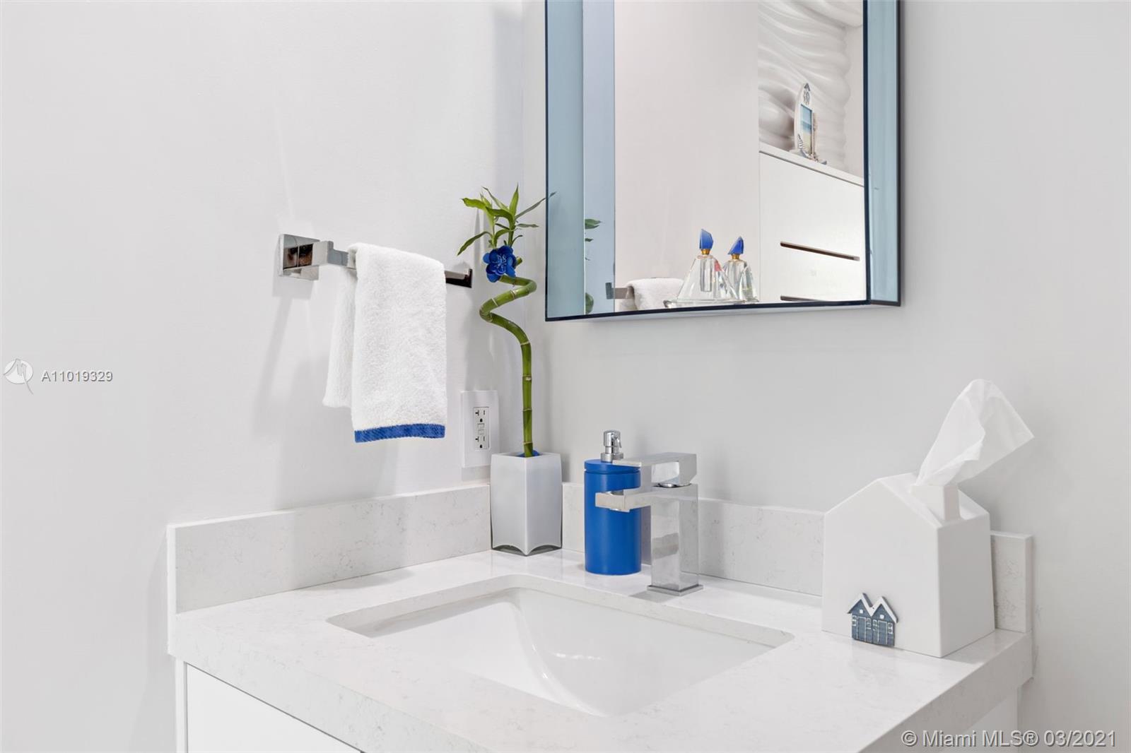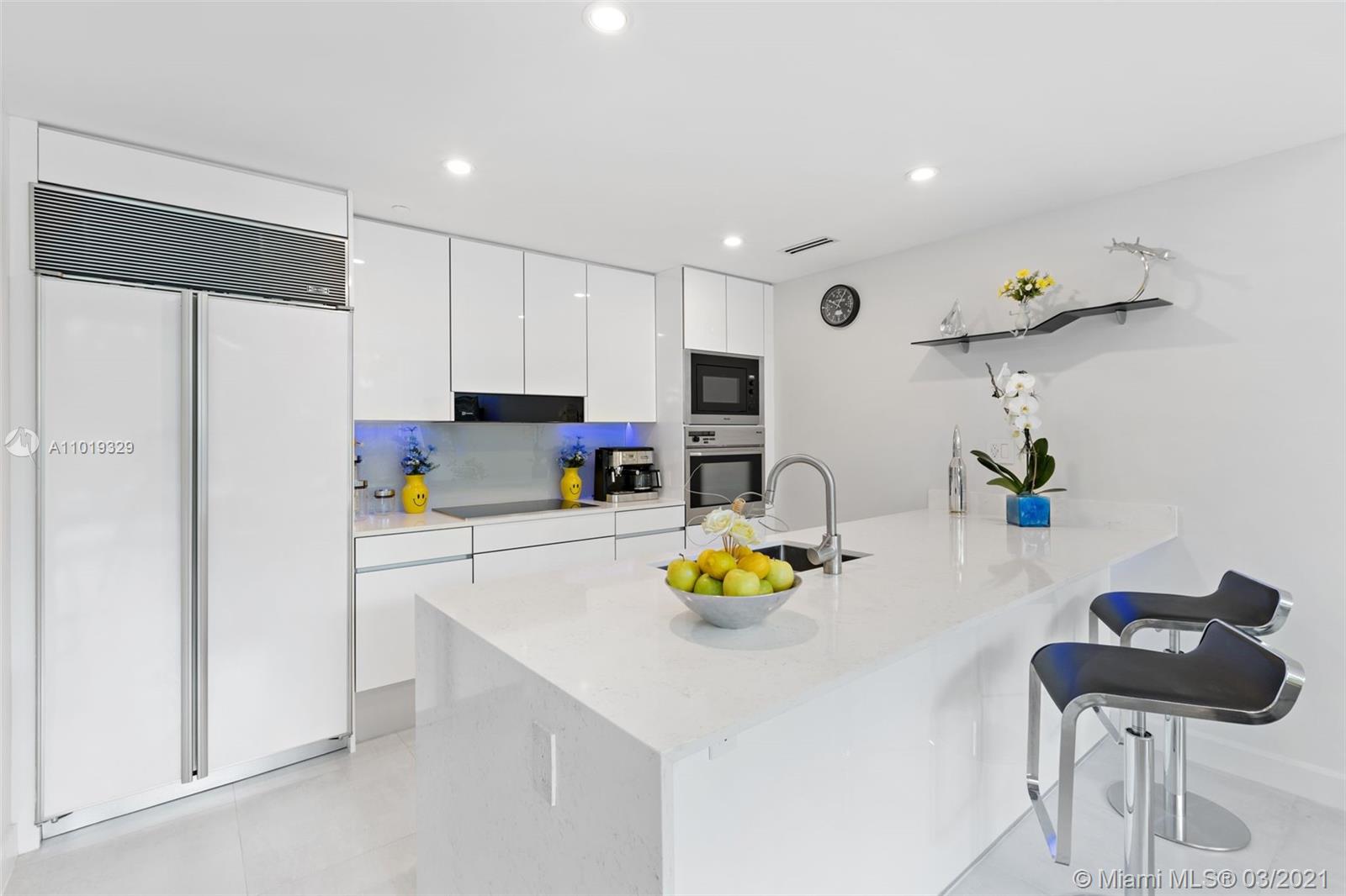 Exquisite attention to details in this fully renovated 2-story high ceiling Townhouse 1 bed plus Den, 1.5 baths located in one of Sobe’s most prestigious buildings. Contemporary open kitchen with cascade quartz countertop and equipped with Miele appliances. Wine Cooler and Extra storage space added.European tile throughout unit and Stain Oak wood stairs. Tempered laminated glass and Stainless steel railing. Motorized shades and blackouts. Huge bedroom suite and separate den / office space. Custom closets and doors. New Condenser and AC unit w/ UV light. New washer and Dryer. Lighting fixtures: Artemide, H. Miller. etc. Bath with free standing tub, Grohe fittings and TV on wall. 300 SQ ft. aprox. private Patio.