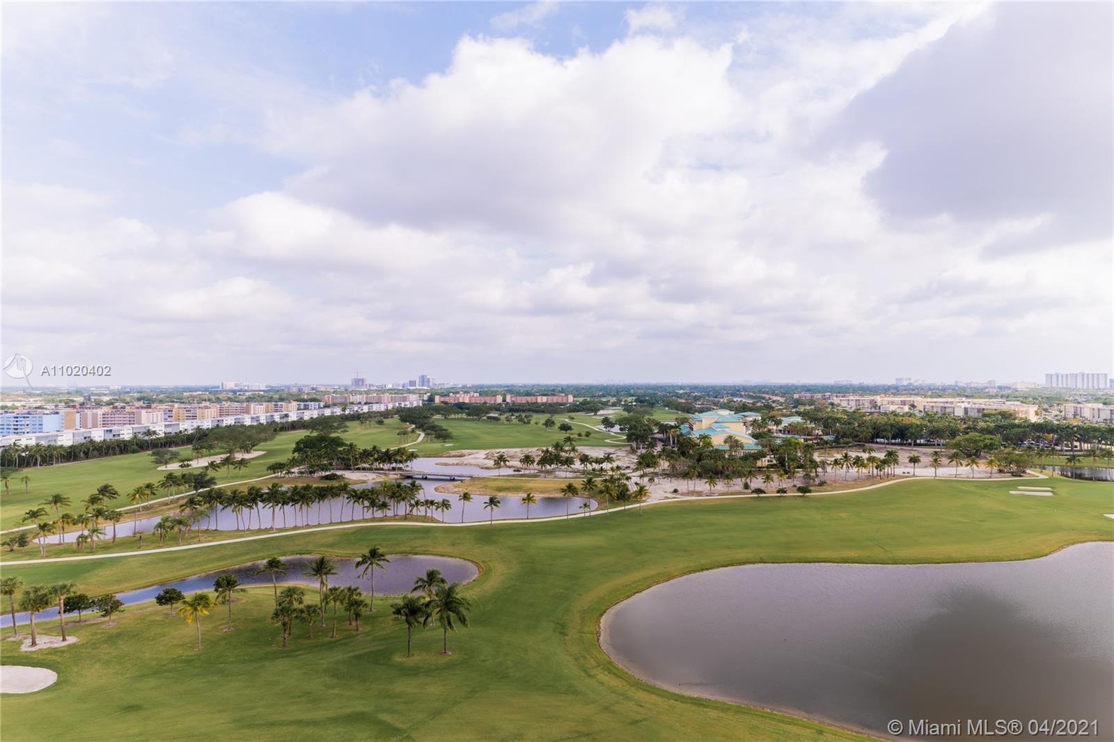 TURN-KEY apt with breathtaking Golf Course, Lake, Ocean & Pool Views from Wrap Around Balcony. Terrific split floor plan & open kitchen are great for entertaining. Impact windows, granite countertops, SS appliances, plus full size washer/dry. Amenities Galore! 24hr security, valet, business center, theatre room, tennis, spa & fitness center, jogging path, heated pool, billiard & party room. Walk to the beach & restaurants, Gulfstream Park, & drive to Aventura Mall in 10 minutes.includes cable, internet, water, sewer & trash, & appliances contract.
