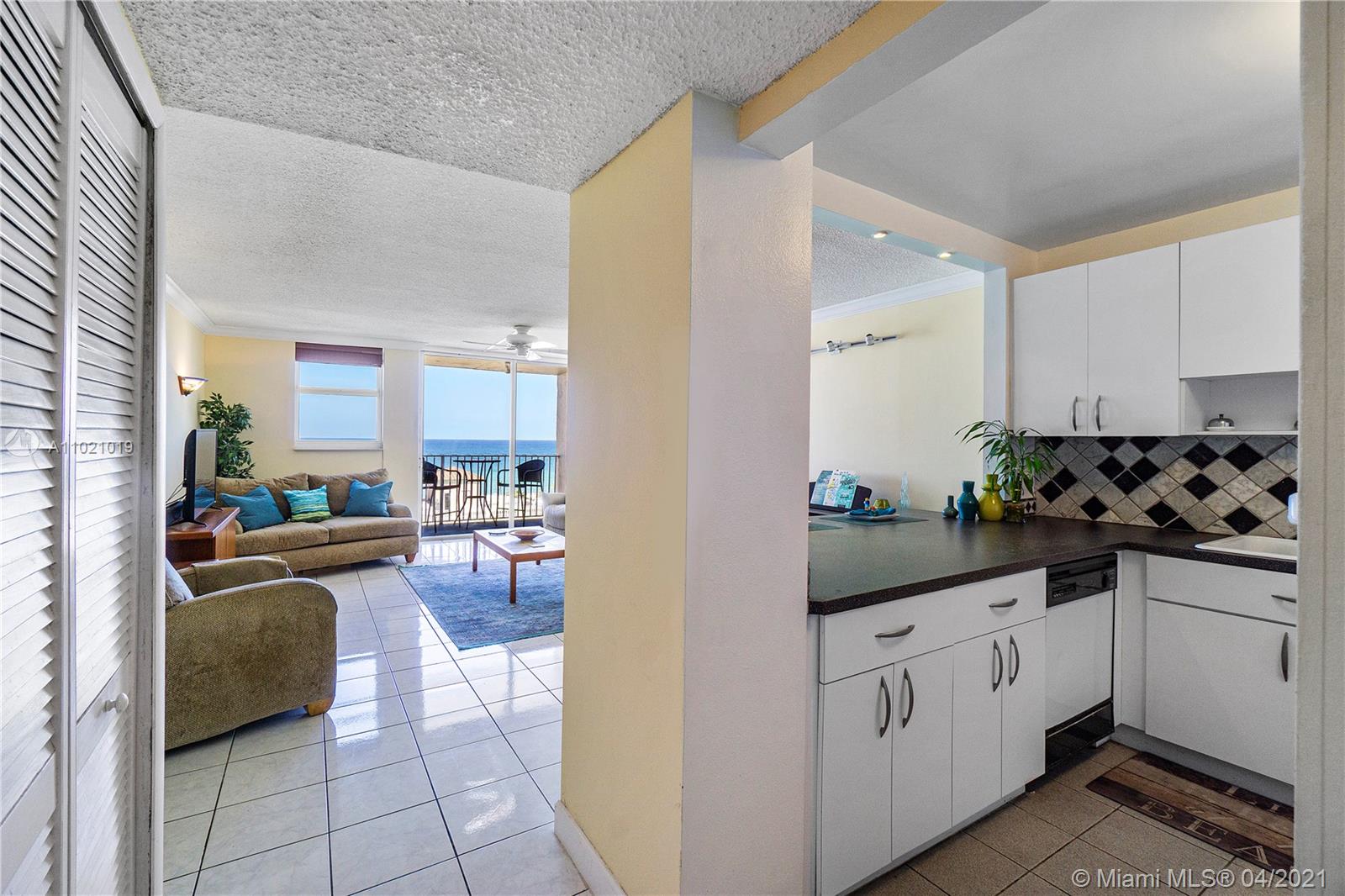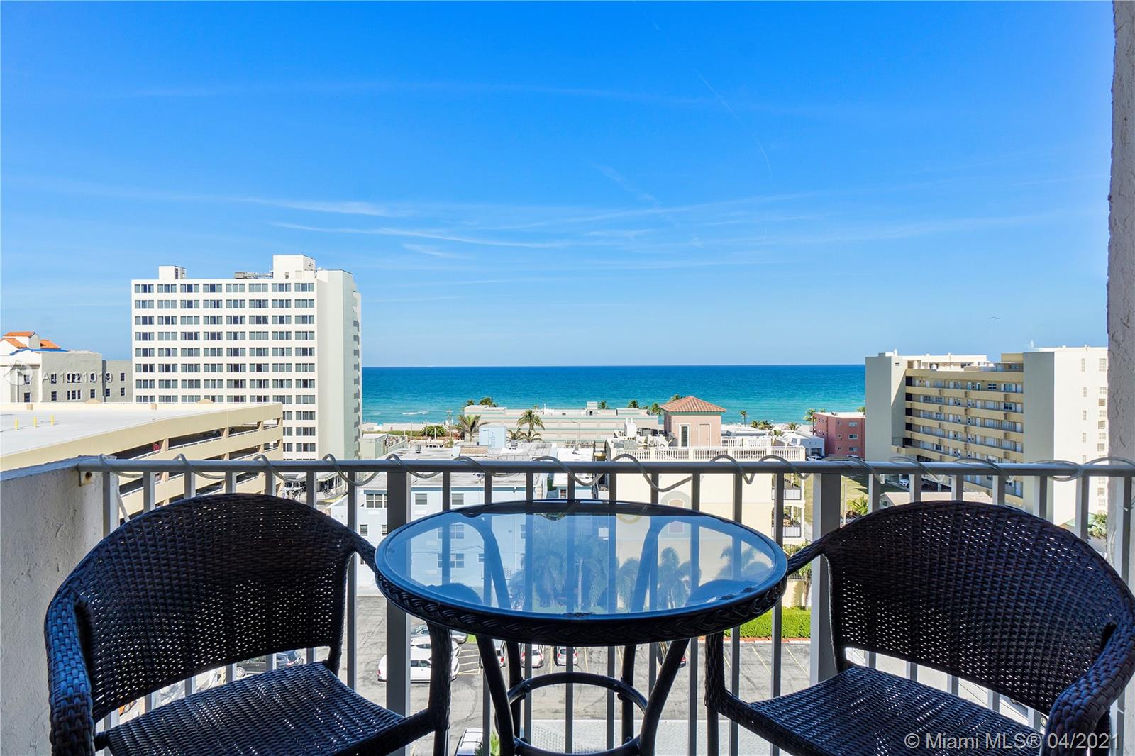 YOU CAN HAVE IT ALL! A condo on Hollywood Beach on the ocean side with direct ocean views on a high floor. AND low maintenance! Just $205/mo. Just one block to the sand and surf. Stroll, jog or bike along the famous 3.5 mile Hollywood Beach Broadwalk, featuring many diverse restaurants. Secure lobby building with 10 floors and a total of just 45 units. All impact windows and sliding glass door. Open, renovated kitchen with pass through dining area gives you gorgeous direct ocean views while prepping meals and entertaining. Full bath is renovated and features a bathtub w/whirlpool jets. Half bath also renovated. Large walk-in master closet plus additional closet and cabinet space for extra storage. Tankless water heater. Ceramic tile throughout. Heated pool, patio and bbq area.