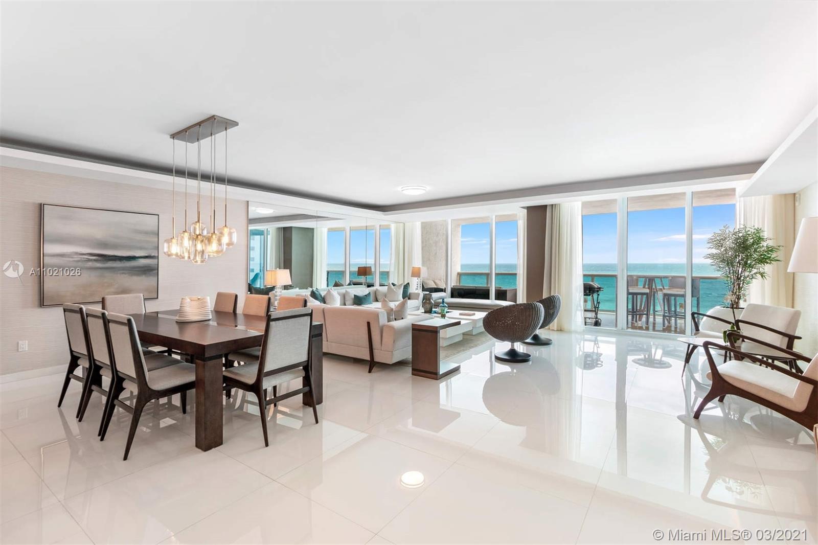 Amazing opportunity to acquire a turnkey residence at prestigious Trump Hollywood, an ocean front condominium that sits on 240 feet of pristine beach in Hollywood, Florida. This unique unit is flow thru with direct views of the ocean and the intracoastal, boasting 3395 sq ft of living area and two expansive balconies. It has been professionally decorated and is ready to move in. The spacious living space makes this unit especially comforting for either your new permanent home or your home away from home. The condominium also offers exceptional amenities such as beach and pool service, restaurant by the pool, 24 hour valet, gym, tennis courts, billiard, just to name a few.