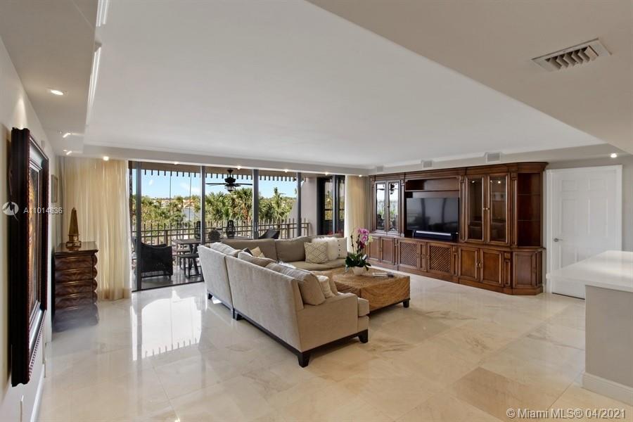 Rarely available 04 line “Split Plan” with 1,882 interior SF and direct bay and lush tropical landscape views! This beautifully updated residence offers 2 bedrooms, 2 bathrooms, an open gourmet kitchen with beautiful dark cabinets, quartz countertops, and stainless-steel appliances. The floors are exquisite French vanilla marble floors. There is beautiful lighting throughout which includes recessed lighting and lighting for artwork. Both bathrooms are remodeled, and the primary bathroom has a large glassed-in shower and crema marfil natural stone floors. Other features include a very spacious primary suite with a large walk-in closet, laundry room with full sized stacked washer and dryer. Live on a guarded 20-acre island with full services and resort style amenities.