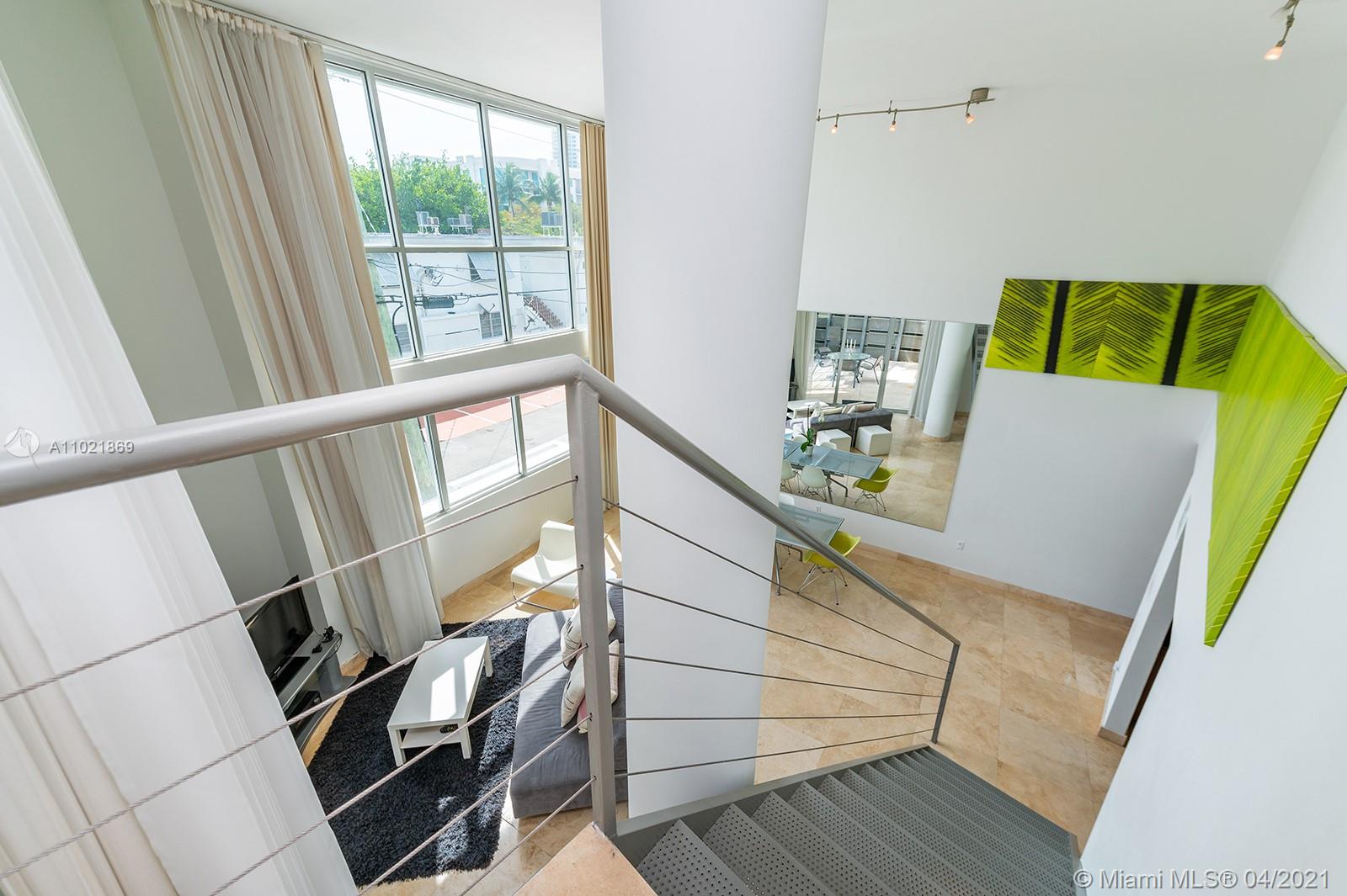 The Ilona—modern town-home living in the best section of SoFi (the best location of South Beach)! Master suite upstairs in this spacious 2 bed 2 bath loft condo. 20’ ceilings with floor to ceiling glass windows, master balcony and huge private patio. Combined indoor-outdoor living unexpected in Sobe. Grill and entertain outside or plenty of space for indoor too. In unit washer/dryer, assigned gated covered parking. Boutique 16-unit building with rooftop lounge (sunrise and sunset views) and pool. Open air lobby-true tropical Florida living. Please give 24 hour notice to show, agent must accompany.