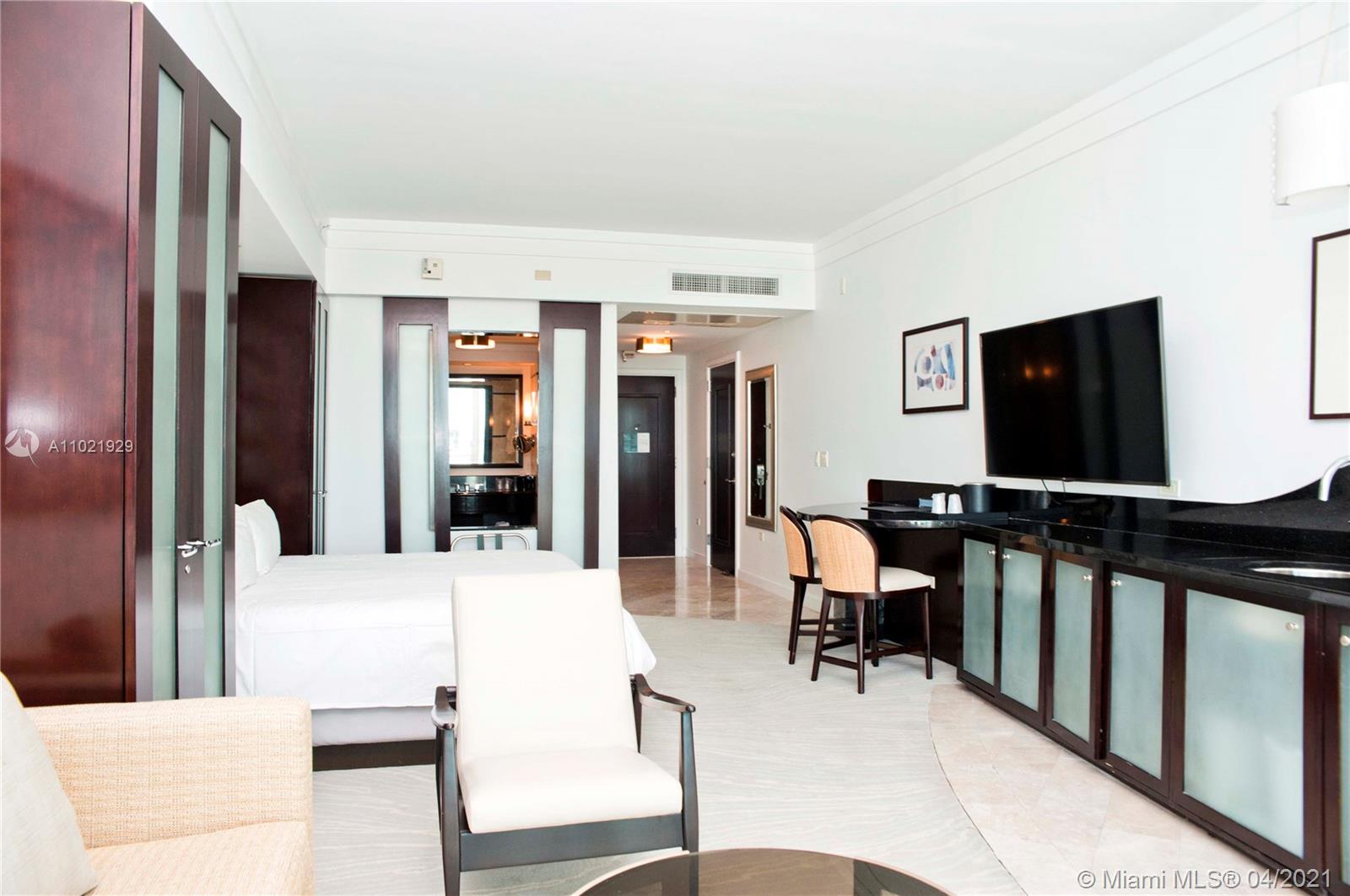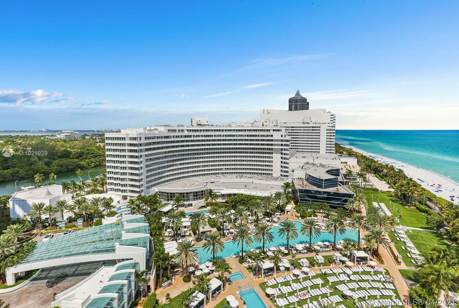 Impeccable Junior Suite on a high floor with ocean & pool views at The Fontainebleau Tower III. Enjoy full service, vacation-style living in a furnished turnkey unit with king size bed and sleeper sofa. The Fontainebleau Resort offers luxury amenities on 22 oceanfront acres including award-winning restaurants, a night club, spa & state-of-the-art fitness center. Maintenance includes: AC, local calls, electricity, valet + daily free breakfast in the owners lounge. This unit is currently enrolled in the hotel rental program and financial statements are available upon request. Showings are available by appointment.