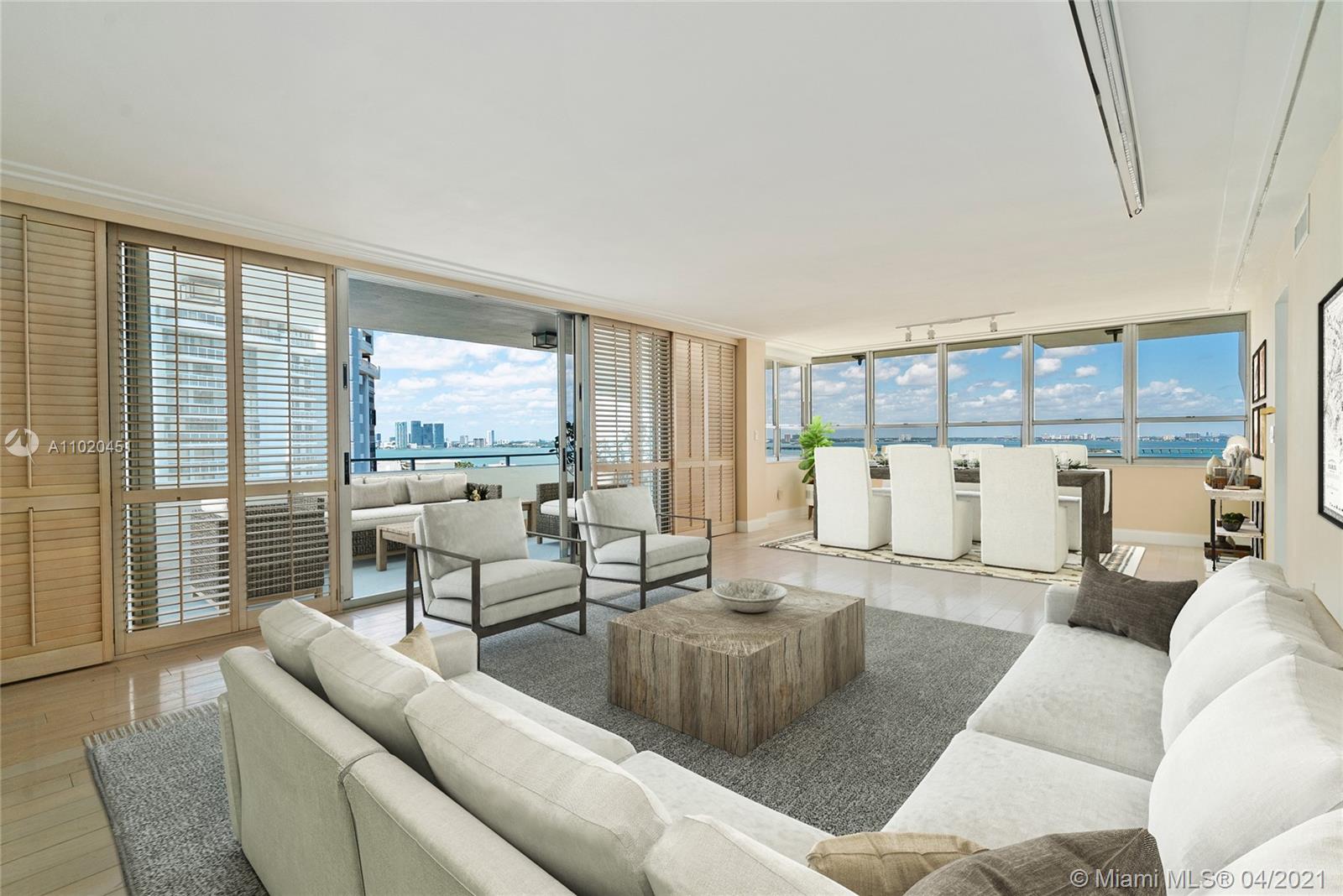 Sky high with expansive North views of park, bay, marina and ocean. Spacious 2/2.5 on desirable Belle Isle. A beautiful tropical oasis on the Venetian Causeway minutes away from World Class dining, shopping, golf courses, boating, museums...yet distant from crowds, traffic and everyday stress. Perfect to relax with friends or entertain a crowd with large open balcony expanding your living and entertaining areas. Building undergoing a comprehensive updating- NEW-hallways (completion 11/2021), elevators, mezzanine, lobby and Electric Vehicle Charging Station. Many more improvements designed to complement and enhance enjoyment of your new home.