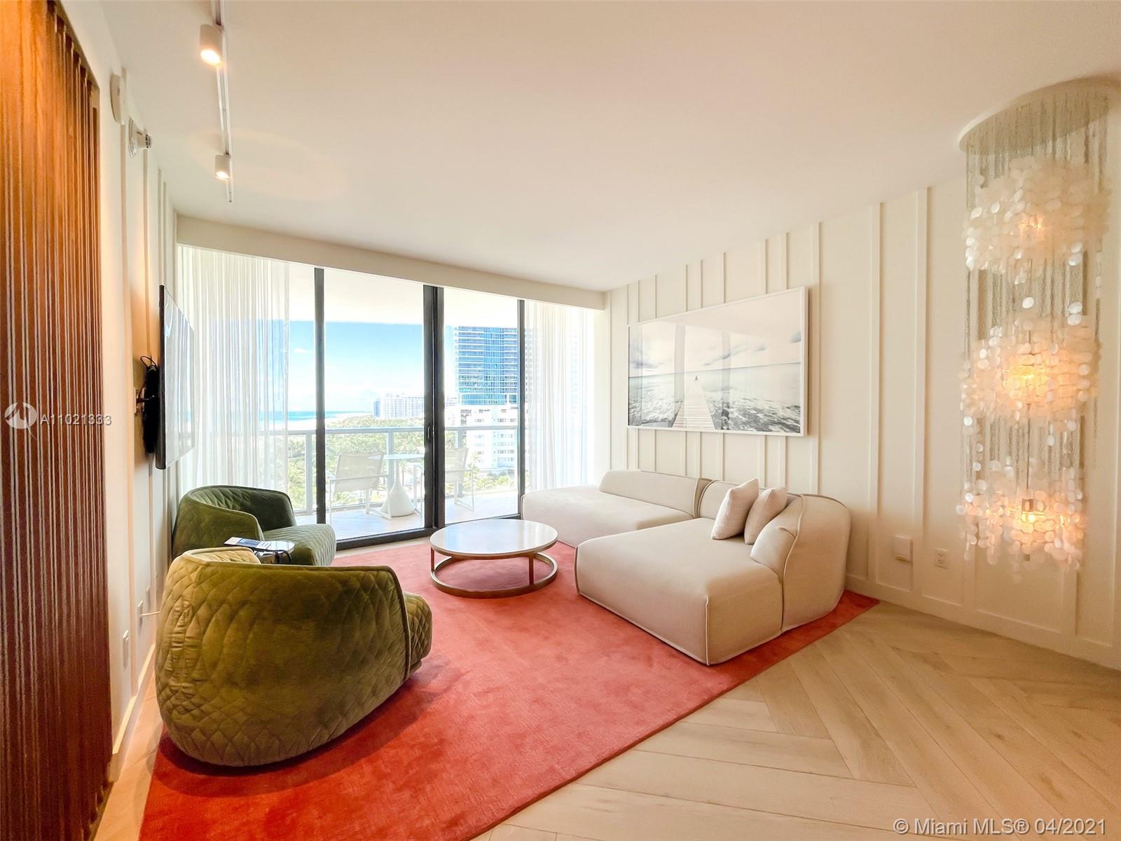 Find tranquility at The W Oasis model oceanfront residence. Exquisite fully furnished 1bd/1.5ba+den, featuring 1,026 SF of living area, open kitchen, top of the line appliances, washer/dryer, floor to ceiling impact windows and 2 distinct balconies off living & bedroom. Designer residence offers breathtaking ocean & city 180 degree views, marble bath w/ separate tub & shower + powder room for guests. Experience the finest 5star amenities, dining & concierge Miami Beach has to offer! Private full service beach, 2 picturesque pools w/ cabanas, fitness center, newly renovated 9,540 SF AWAY spa, tennis, basketball, Mr. Chow Beijing cuisine, several chic indoor and outdoor bars. May be placed in hotel program for additional income. W Residents also enjoy travel discounts at W Hotels worldwide!