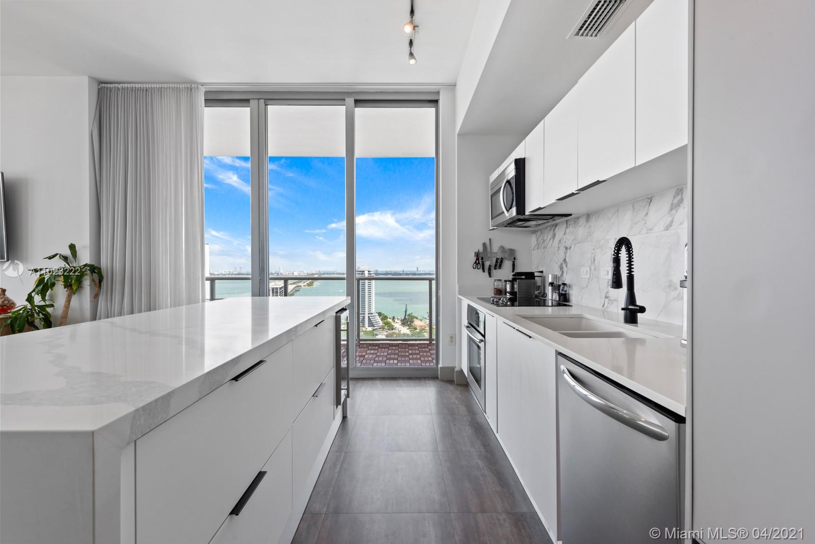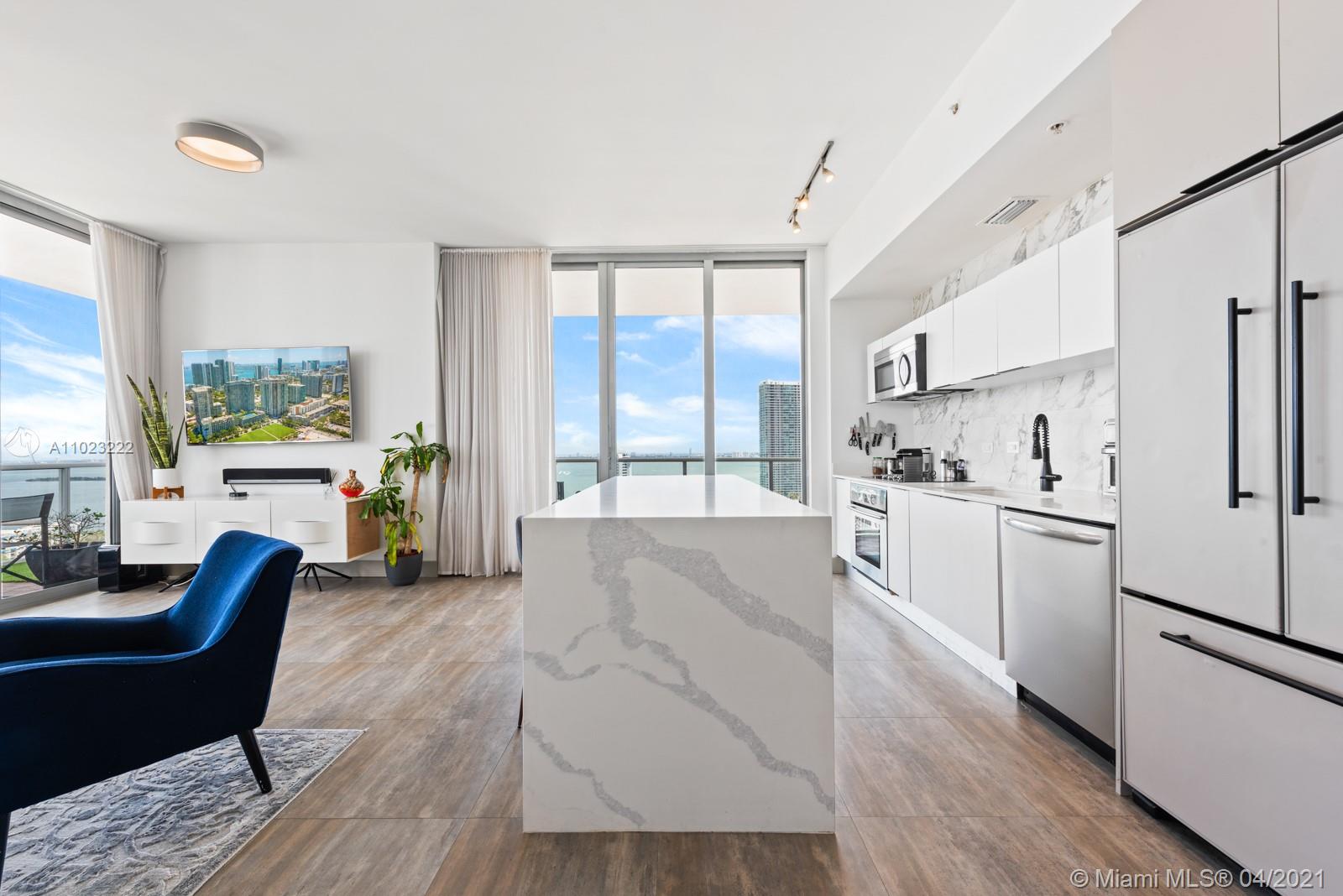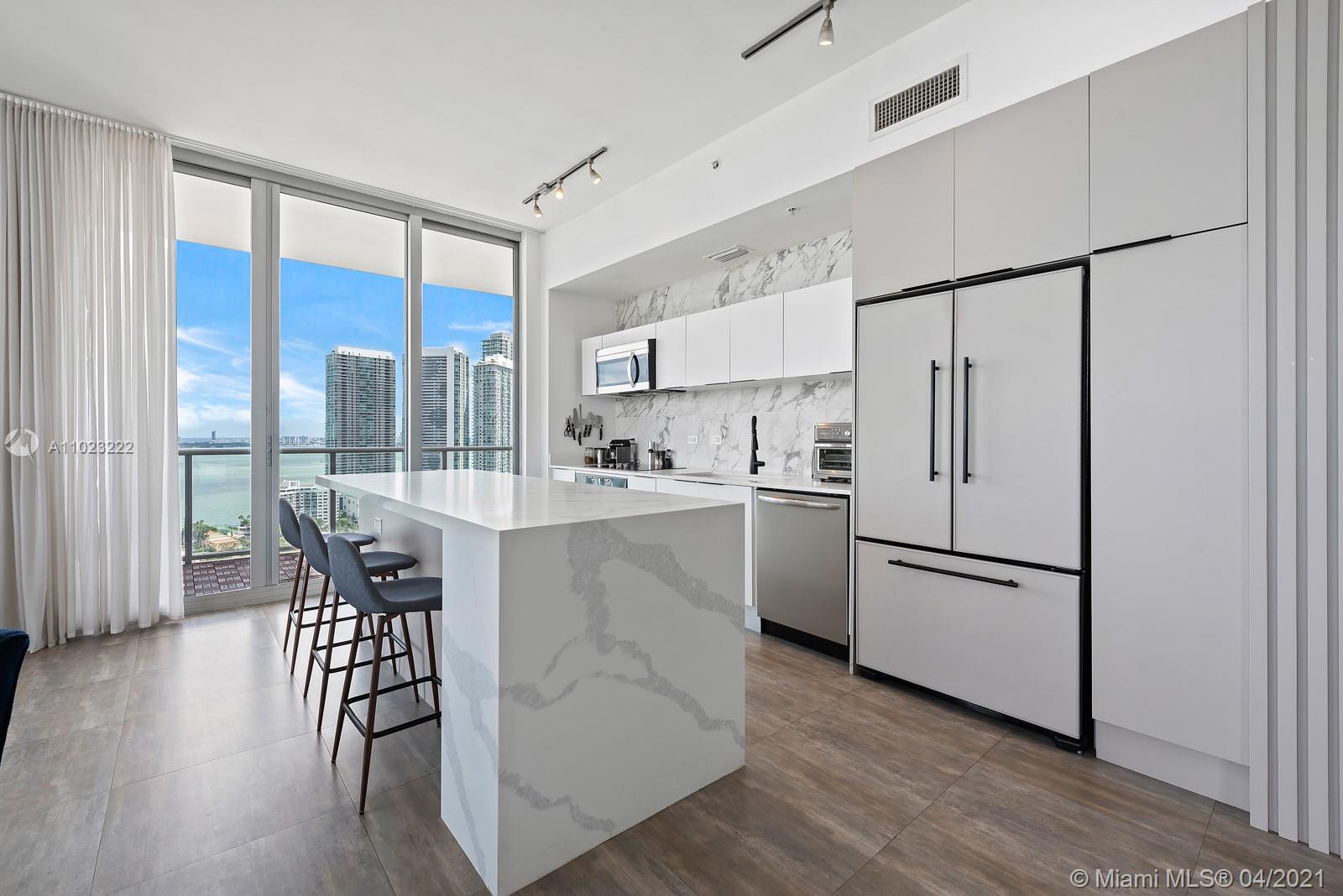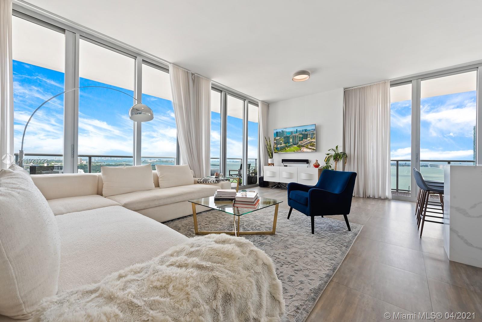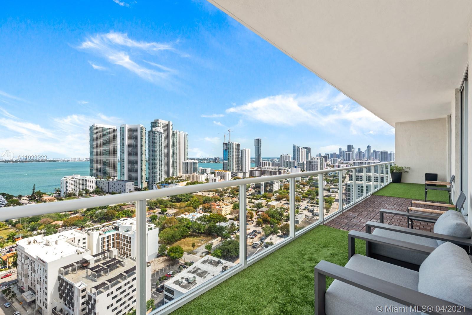 Perched on the 26th floor with wide open views of Biscayne Bay, live the Design District lifestyle in the best line at coveted 2Midtown! Renovated & reconfigured with style, this former three bedroom 01-line has been transformed into a spacious 2 bed + 2.5 bath residence with a massive living area built for entertaining wrapped around by a huge terrace with views from Downtown to Sunny Isles. Renovation included new designer kitchen w/ waterfall island, wine cooler + pantry, powder room, master bed and bath with fully updated double vanity and walk-through closet with built-in storage. The neighborhood is attracting Michelin rated restaurants including Pastis and Cote along with Tom Ford, Givenchy and everyday necessities like Barry's Bootcamp and Target. Welcome to the new Miami.