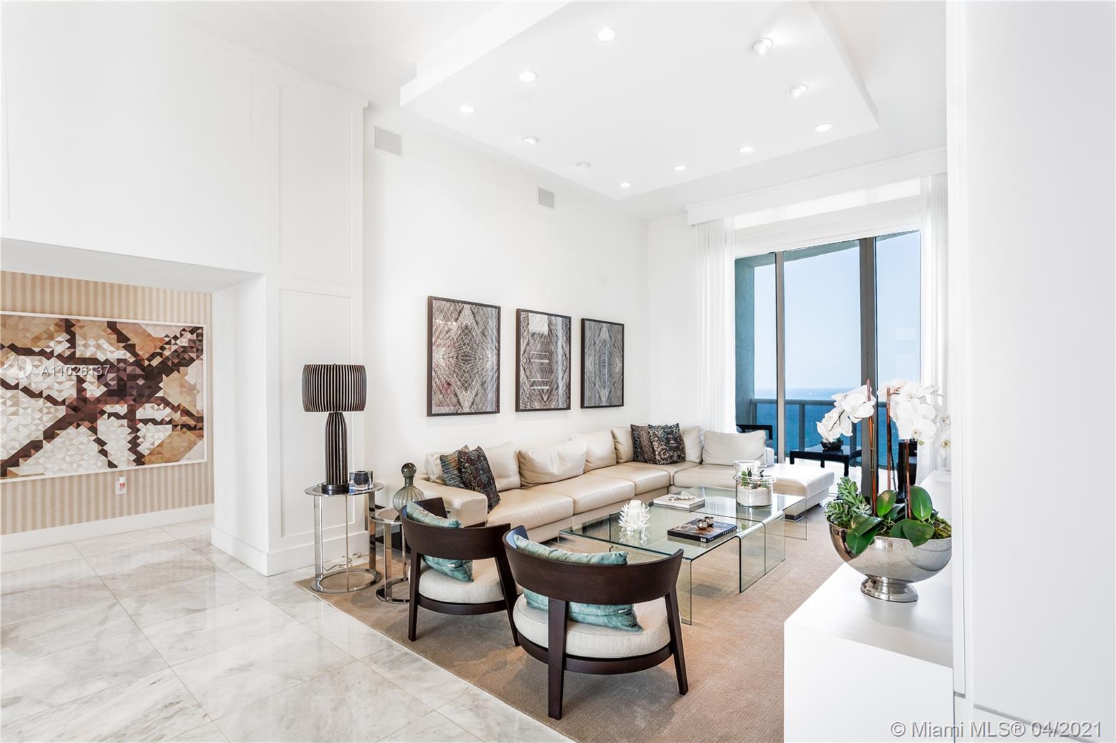 BREATHTAKING DIRECT OCEAN, INTRACOASTAL AND CITY VIEWS. PROFESSIONALLY DECORATED 3 BED & 3.5 BATH. EAST TO WEST FLOW THRU UNIT 12" CEILINGS. APARTMENT COMES WITH AUTOMATED SISTEM BY CRESTON, CONTROLS LIGHTS, SHADES AND AIR CONDITION. THIS APARTMENT HAS TOP OF THE LINE APPLIANCES,ITALIAN KITCHEN, WINE COOLER & BUILT IN ESPRESSO MACHINE. STATE OF THE ART GYM/SPA, POOL SERVICE, RESTAURANT IN THE BUILDING, BUSINESS CENTER. CLOSE TO BAL HARBOUR SHOPS, AVENTURA MALL.